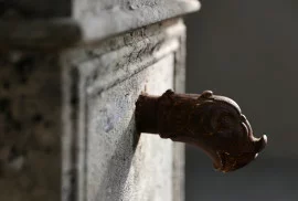 Antique French Limestone Village Fountain with Iron Grate – ca. 1930