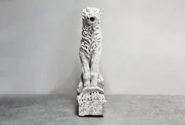 This antique gayole is a traditional guardian sculpture from Southern France, carved from solid natural stone. Originally placed at the entrances of estates and mansions, these stylised lion figures symbolised protection and status.