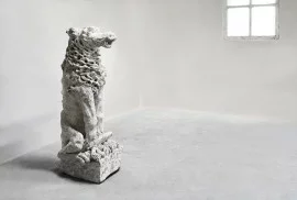 The sculpture has a strong, sober form and a weathered patina that emphasises its authenticity. As such, it is not only a decorative object but also a valuable heritage piece with character.