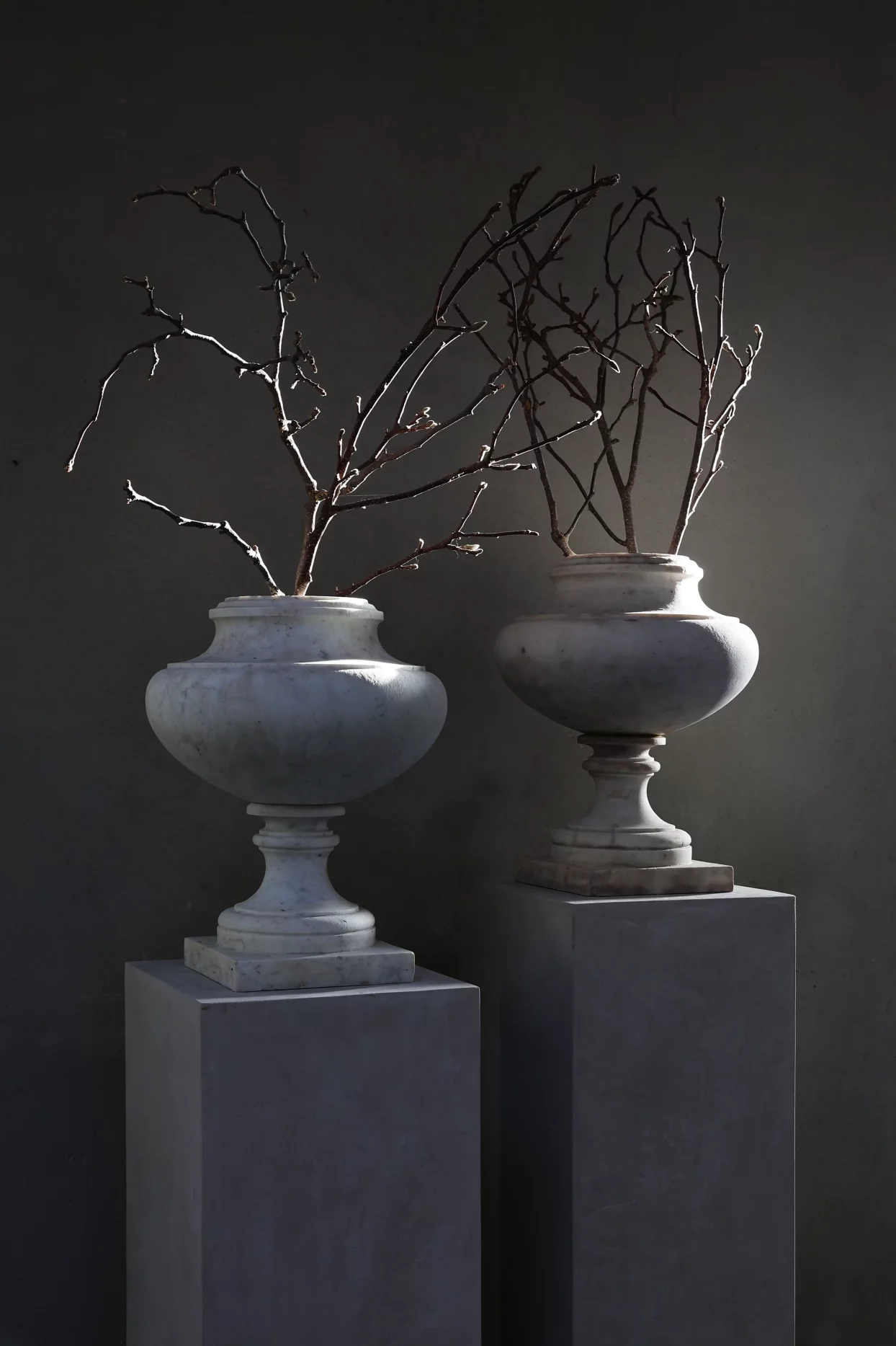 Antique white marble urns from Italy, ca 1900