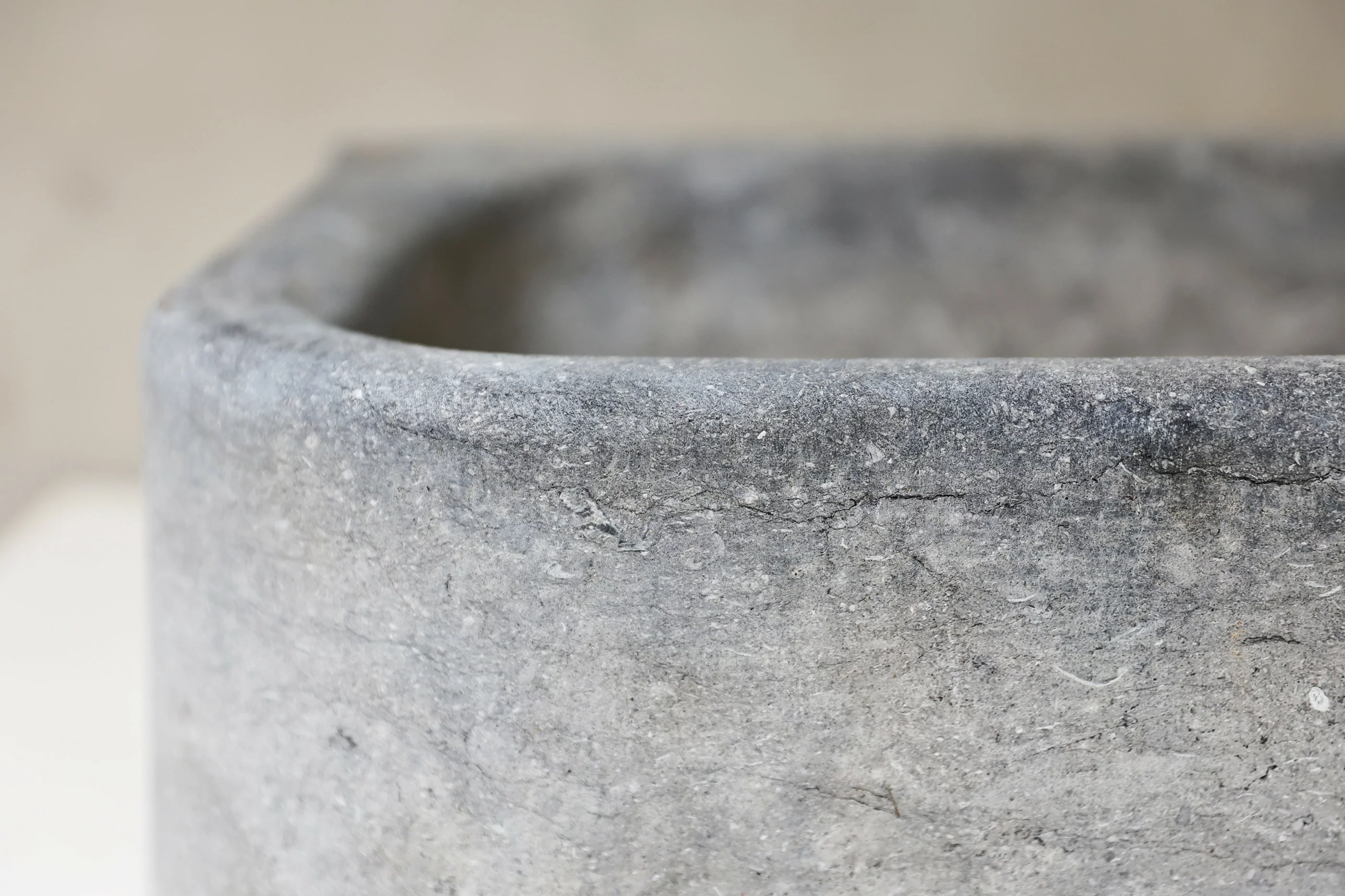 This antique Belgian bluestone sink is a true rarity. With its exceptionally rounded contours, it stands out as one of the most unique pieces we have encountered in over 25 years of dealing in architectural antiques. One-of-a-kind rounded Belgian bluestone sink – the rarest we’ve seen in 25 years. Carved from reclaimed Belgian petit granit, it brings an unmatched combination of elegance, patina, and sculptural beauty to any interior or exterior setting.