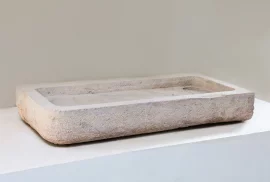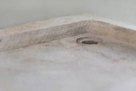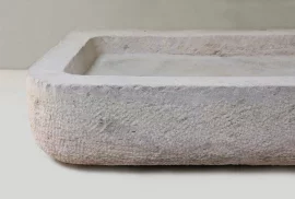 This antique Burgundy stone sink is a one-of-a-kind piece of natural stone with a robust, timeless look. Its hand-carved finish and natural patina create an authentic character that fits perfectly in a country kitchen, rustic bathroom, or outdoor kitchen. Thanks to the durability of natural stone, this sink is not only stylish but also exceptionally strong and suitable for everyday use.