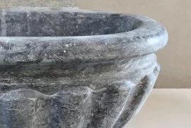 A beautiful antique baptismal font of 'Marbre de Pyrénées' from the 18th century!!! This baptismal font comes from the town of Castelnaudary in France from a private chapel that was later transformed into a hotel.