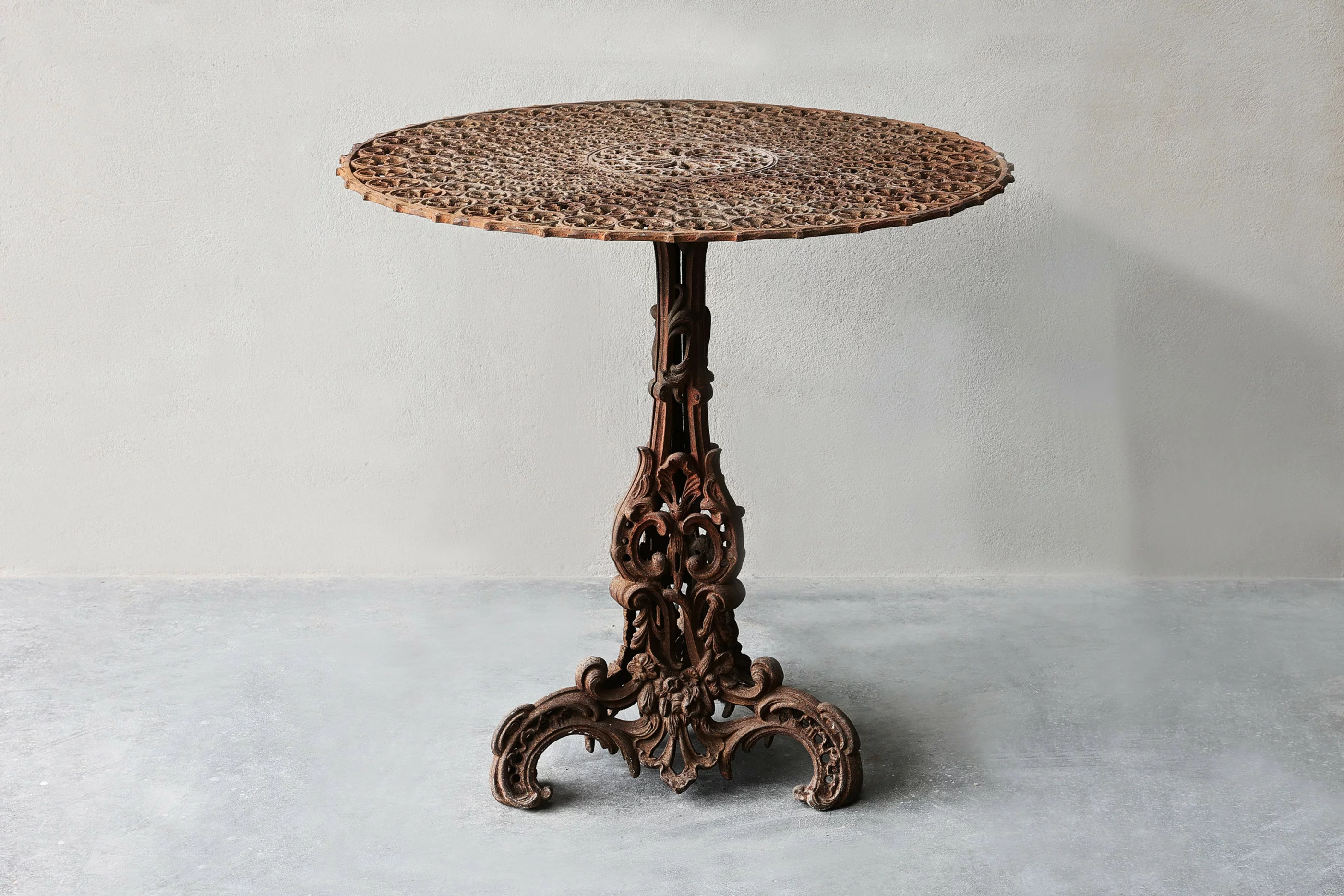 Originating from 19th-century Paris, this small cast iron table is a reflection of the sophisticated French style that defined the era. Such tables were commonly found in Parisian cafés and gardens, prized for their beauty and sturdiness. Today, this table brings a piece of Paris’s rich history and artisanal tradition into modern settings, combining elegance with a sense of heritage.