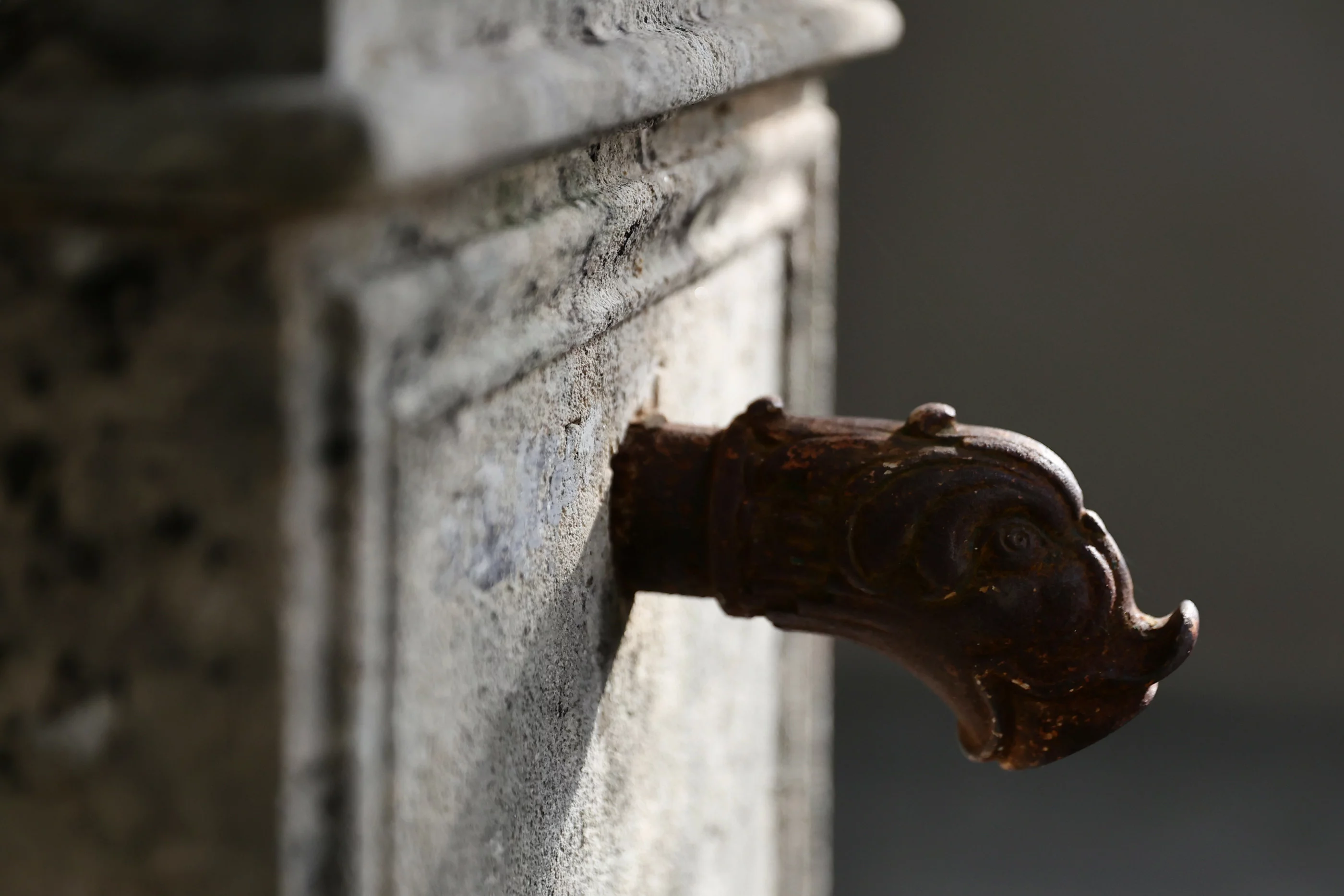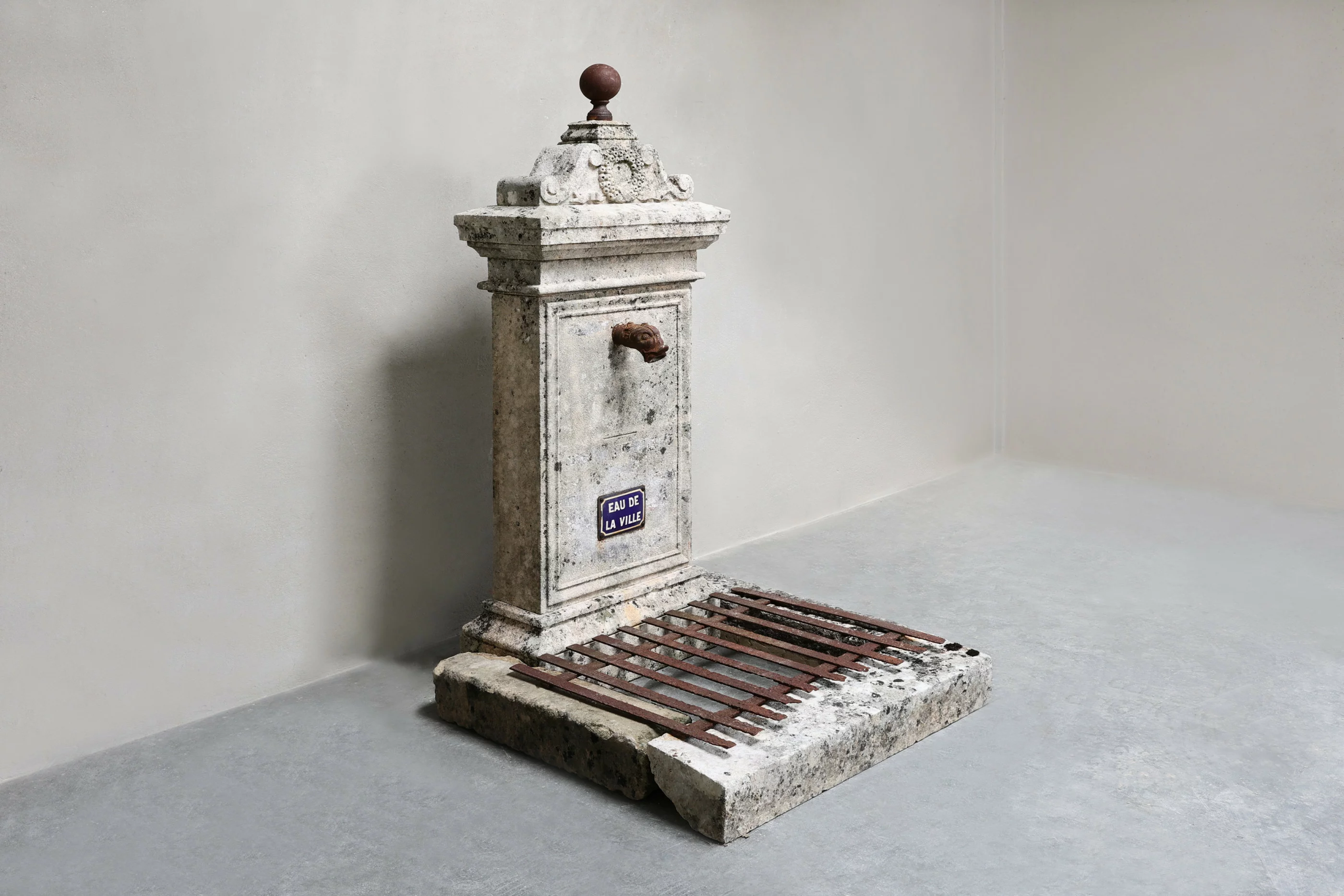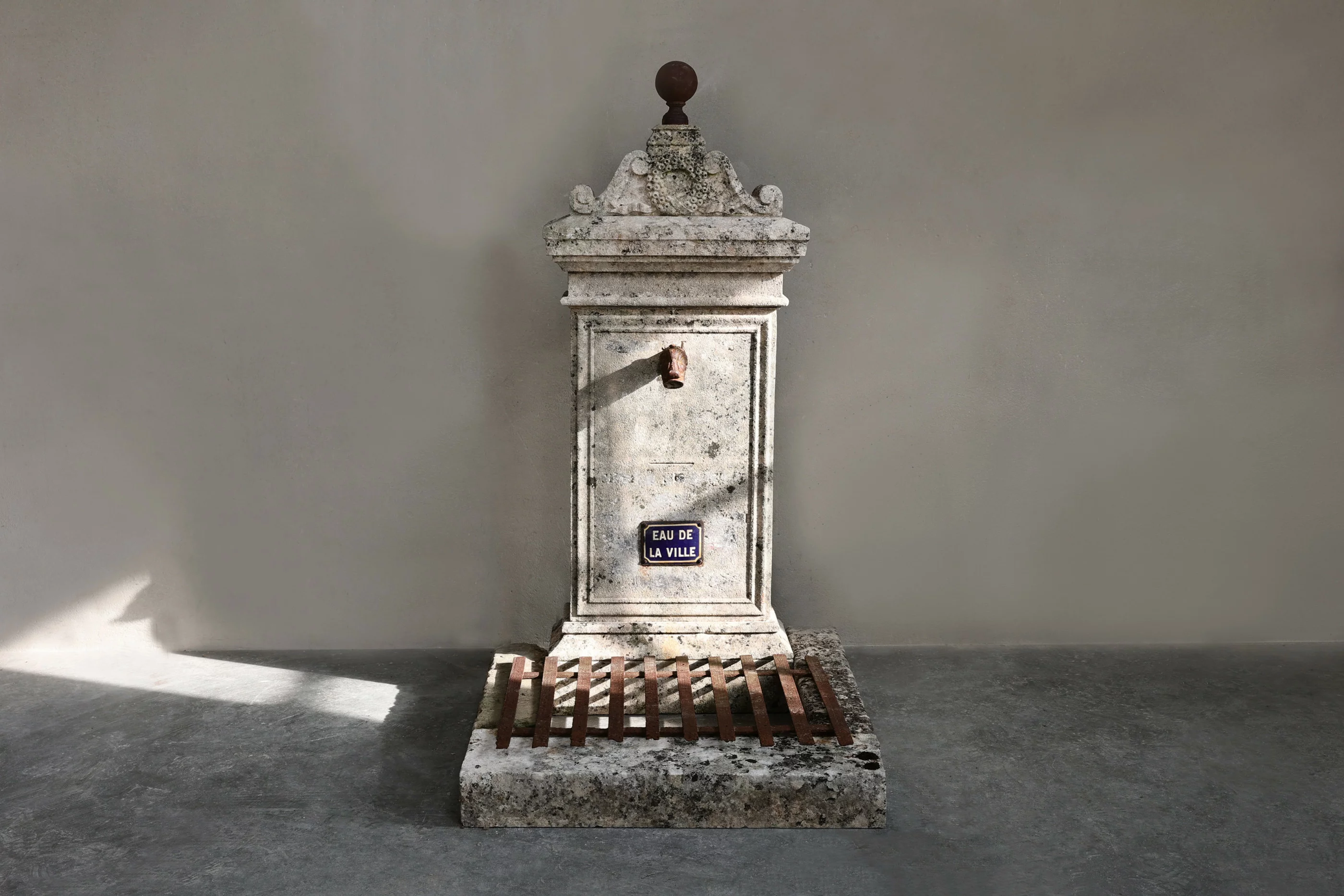 • Fittings: Original bronze spout, iron grate, enamel plaque ("Eau de la Ville")