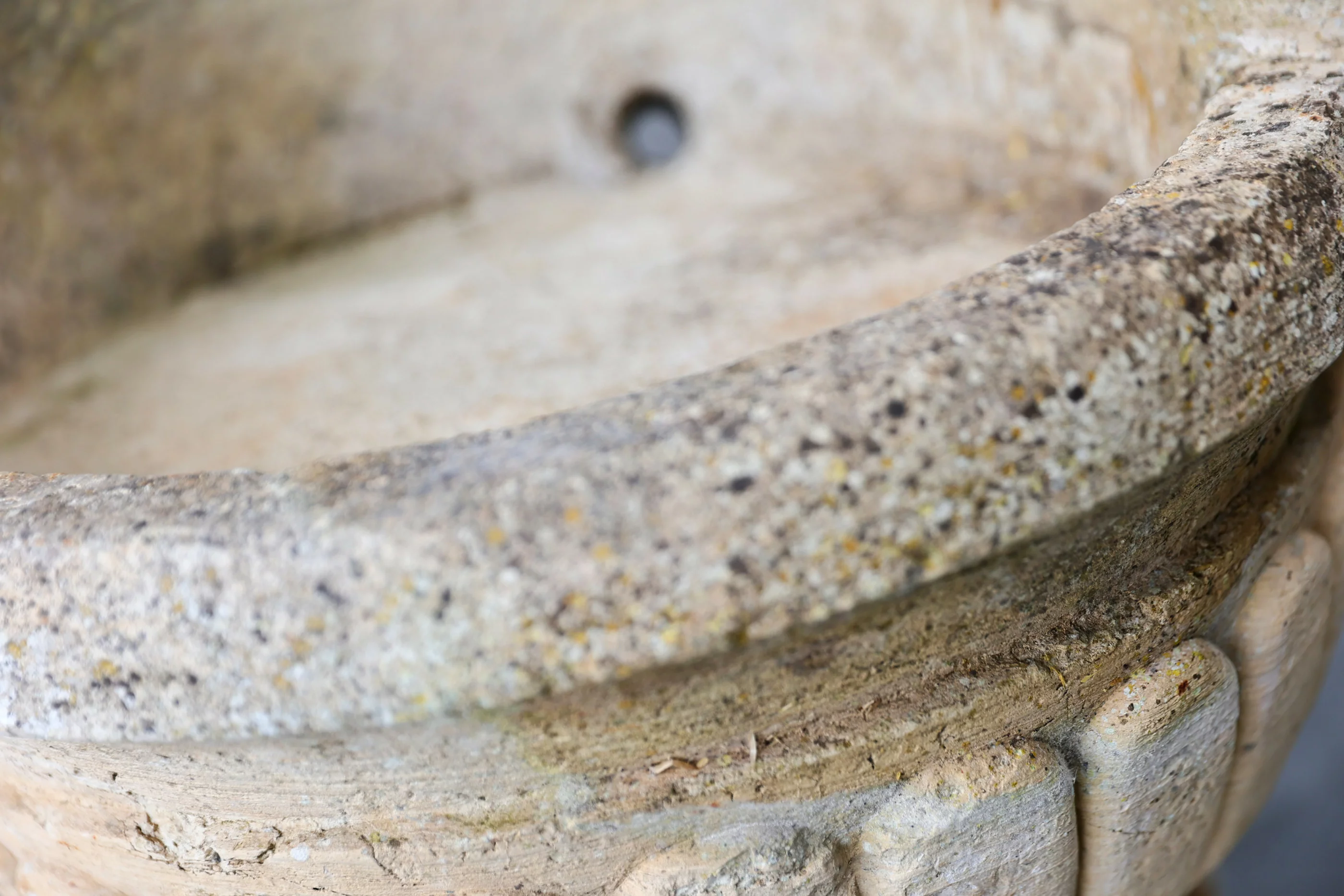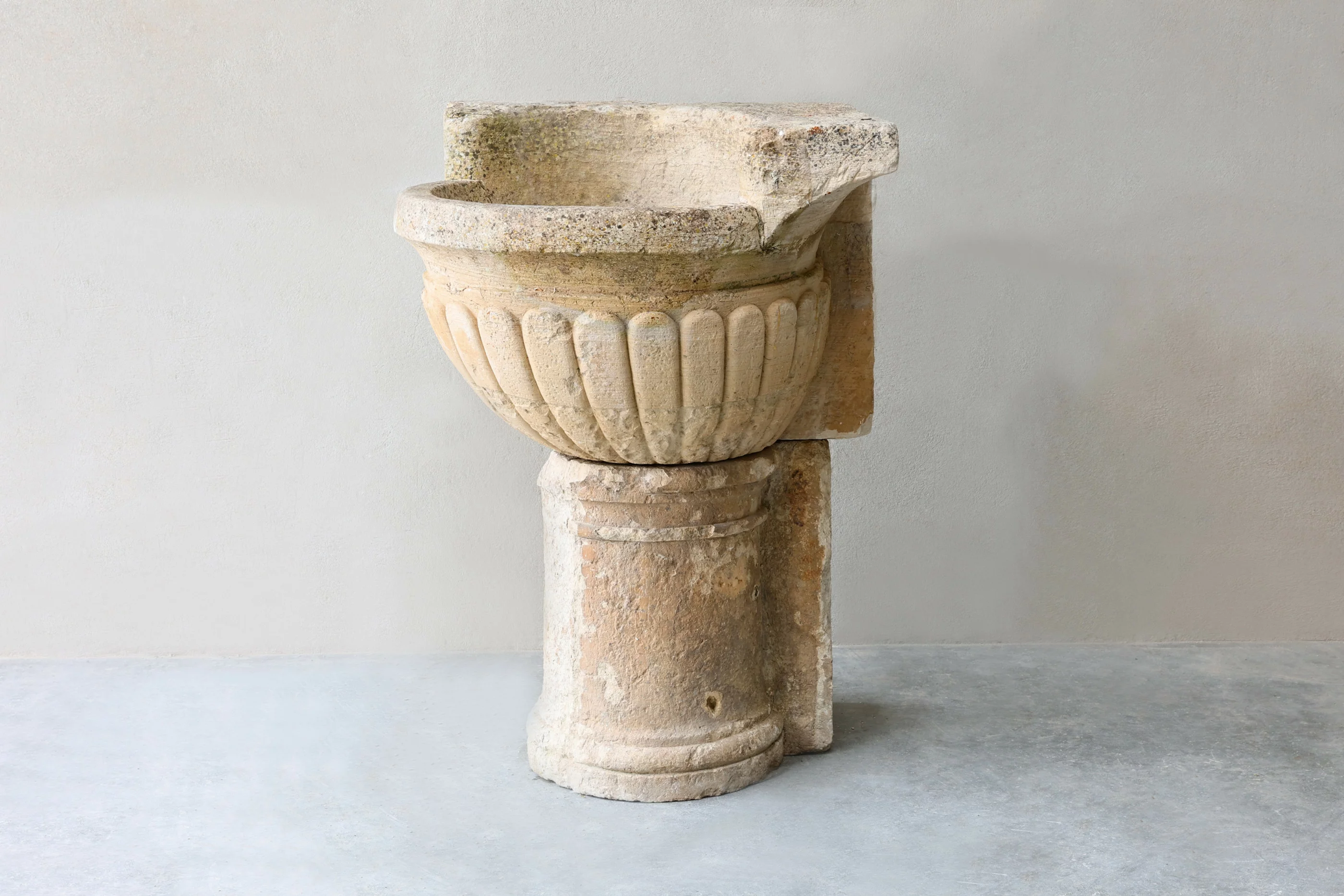 Bring timeless elegance to your outdoor space or interior with this magnificent antique natural stone fountain. This authentic heritage object, crafted from solid limestone, radiates the charm and grandeur of centuries past. The hand-carved bowl with relief and robust pedestal make this a true eye-catcher for anyone who values exclusivity and authenticity.