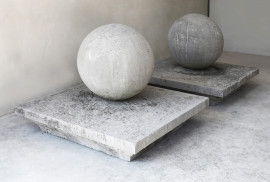 An impressive set of hugh antique stone finials of Belgian bluestone with a stone plateau. A unique set suitable for various architectural applications.