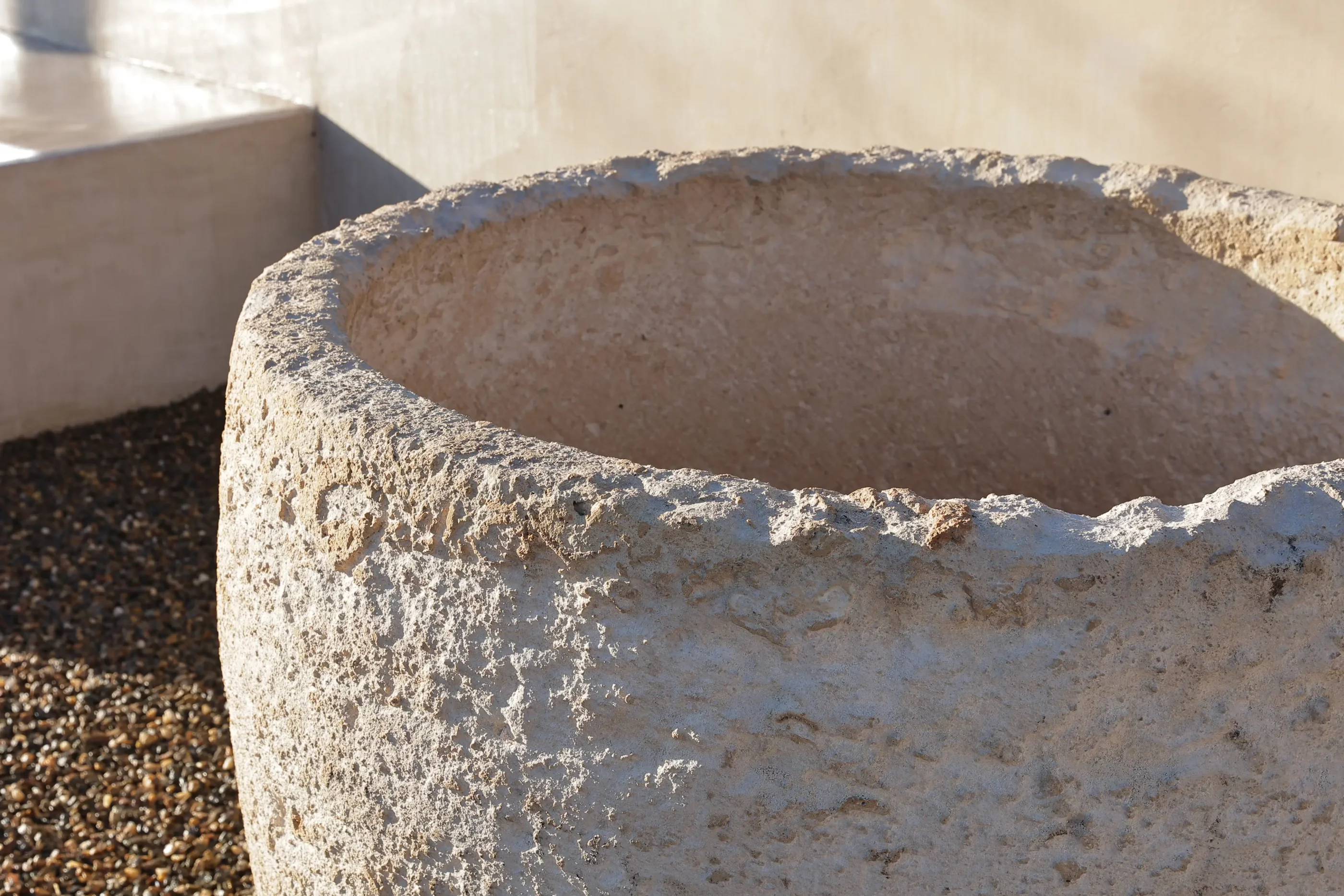 This Antique stone planter is a monolithic French limestone piece with a calm, time-softened surface. The generous diameter and stable mass make it practical for planting and strong as a garden focal point in landscape and courtyard schemes. It is part of our current collection and ready to be specified for a design or build project.