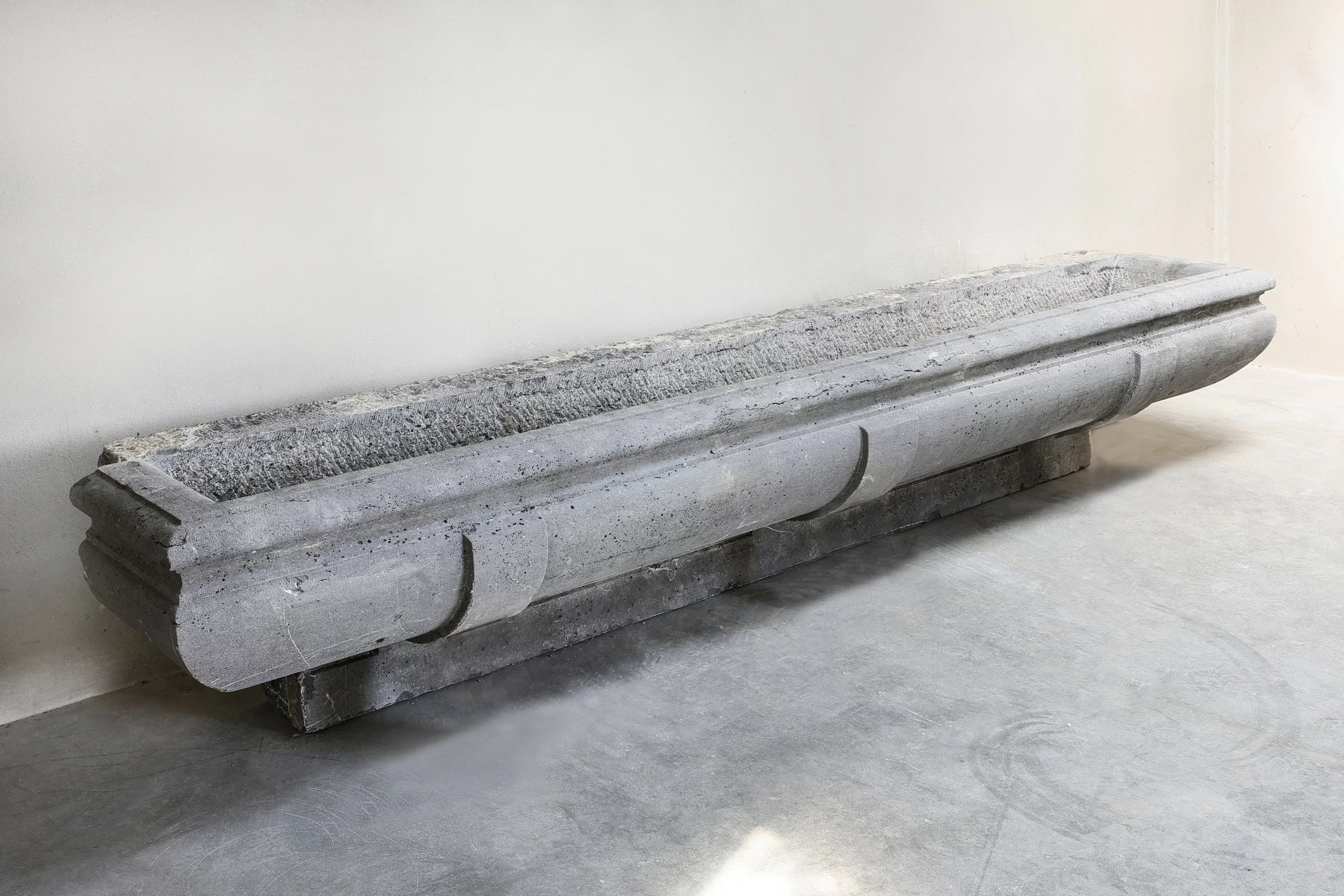 Antique stone troughs have a long history in Europe, dating back centuries when they were used to hold water or feed for livestock. By the 19th century, troughs like this old stone trough became widespread in rural areas, crafted from durable stones such as Belgian Bluestone to withstand daily use.