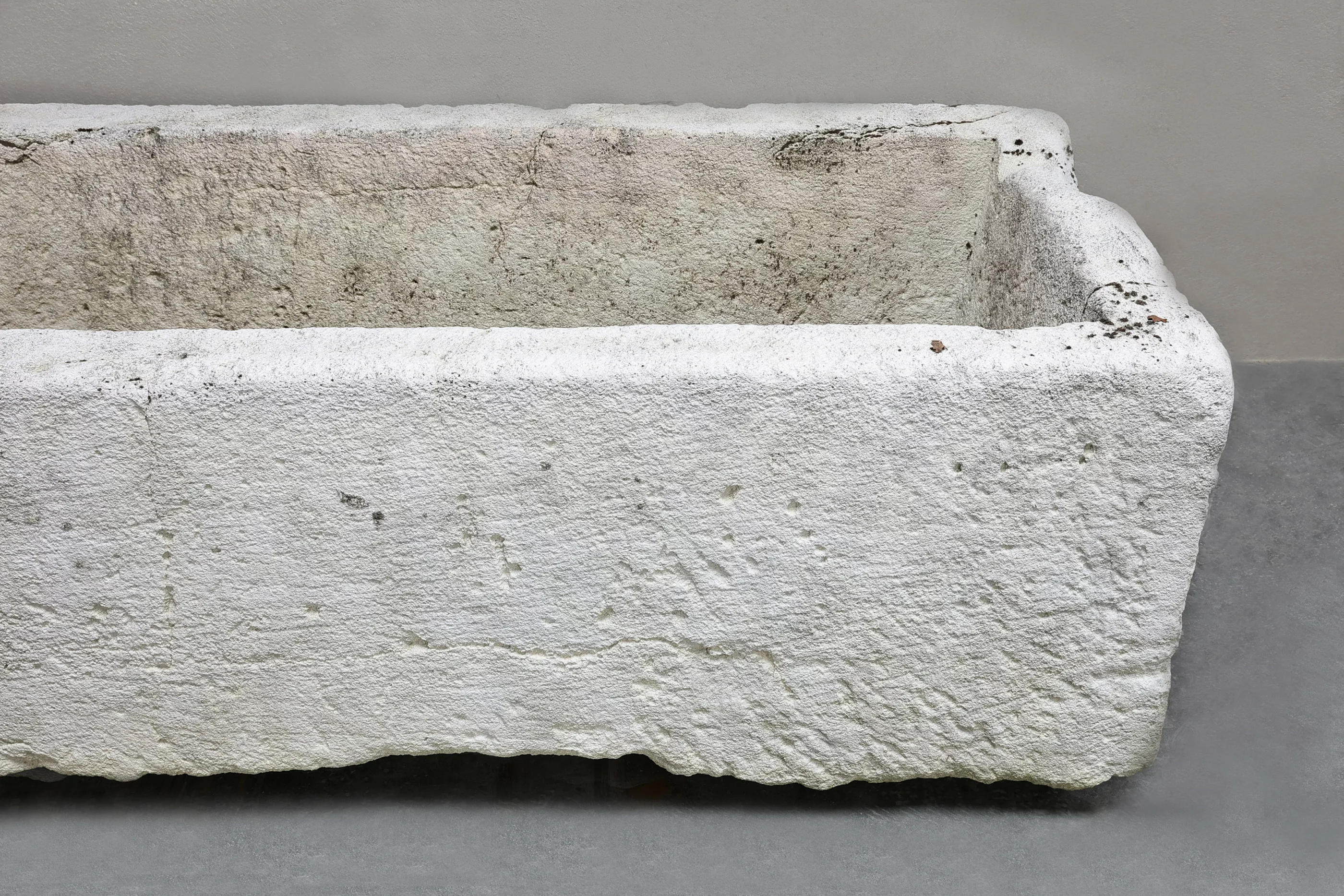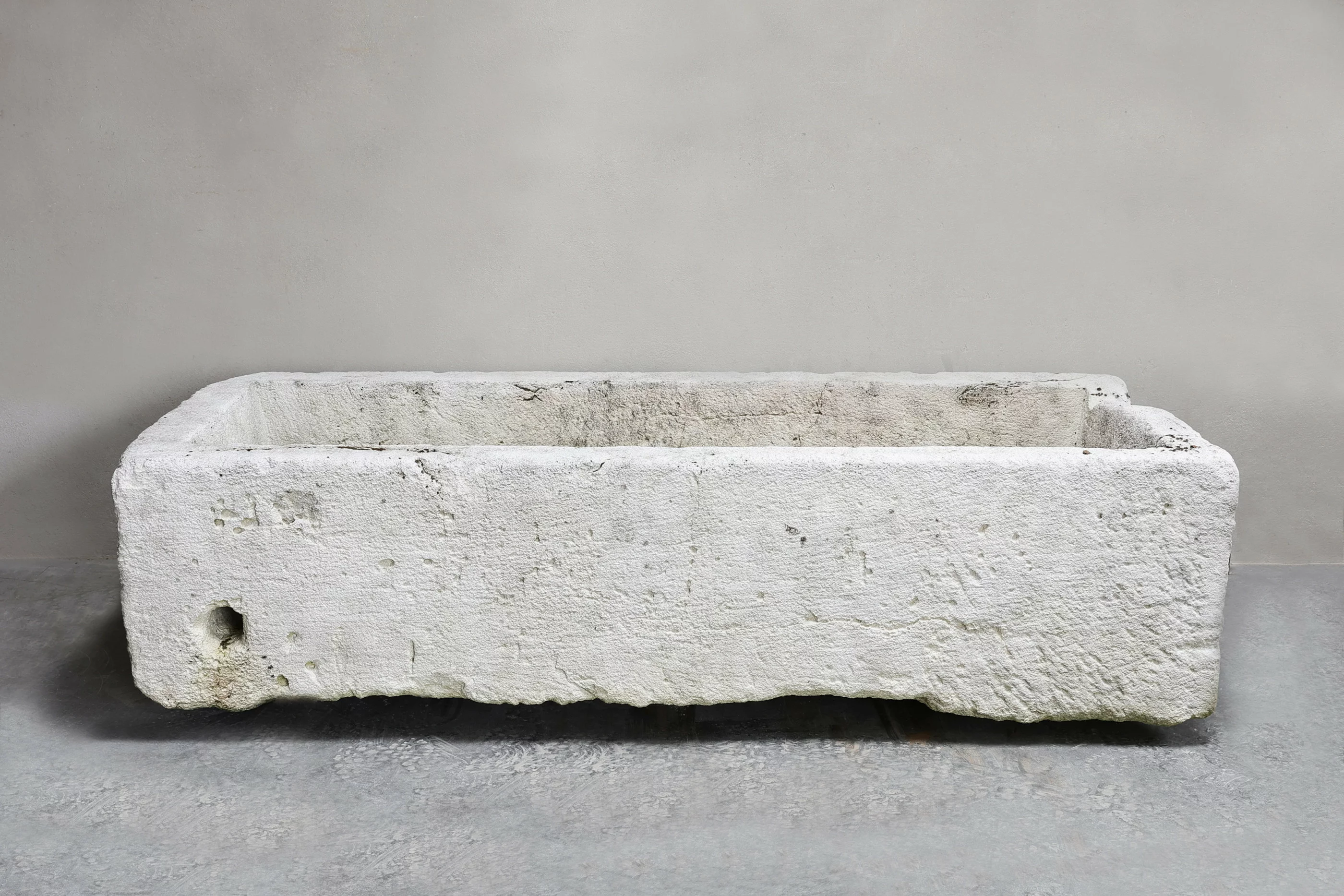 This stunning antique French trough from the 18th century showcases a light hue and elegant proportions, making it an exquisite addition to any setting. Measuring 198 cm in width, 71 cm in depth, and 50 cm in height, this antique trough features a front-facing water outlet, which can be professionally sealed by our restorers upon request. Hand-carved from French limestone, antique troughs like these were once essential on rural farms. Today, they serve wonderfully as antique waterfeatures, luxurious planters, or striking focal points in contemporary homes.
