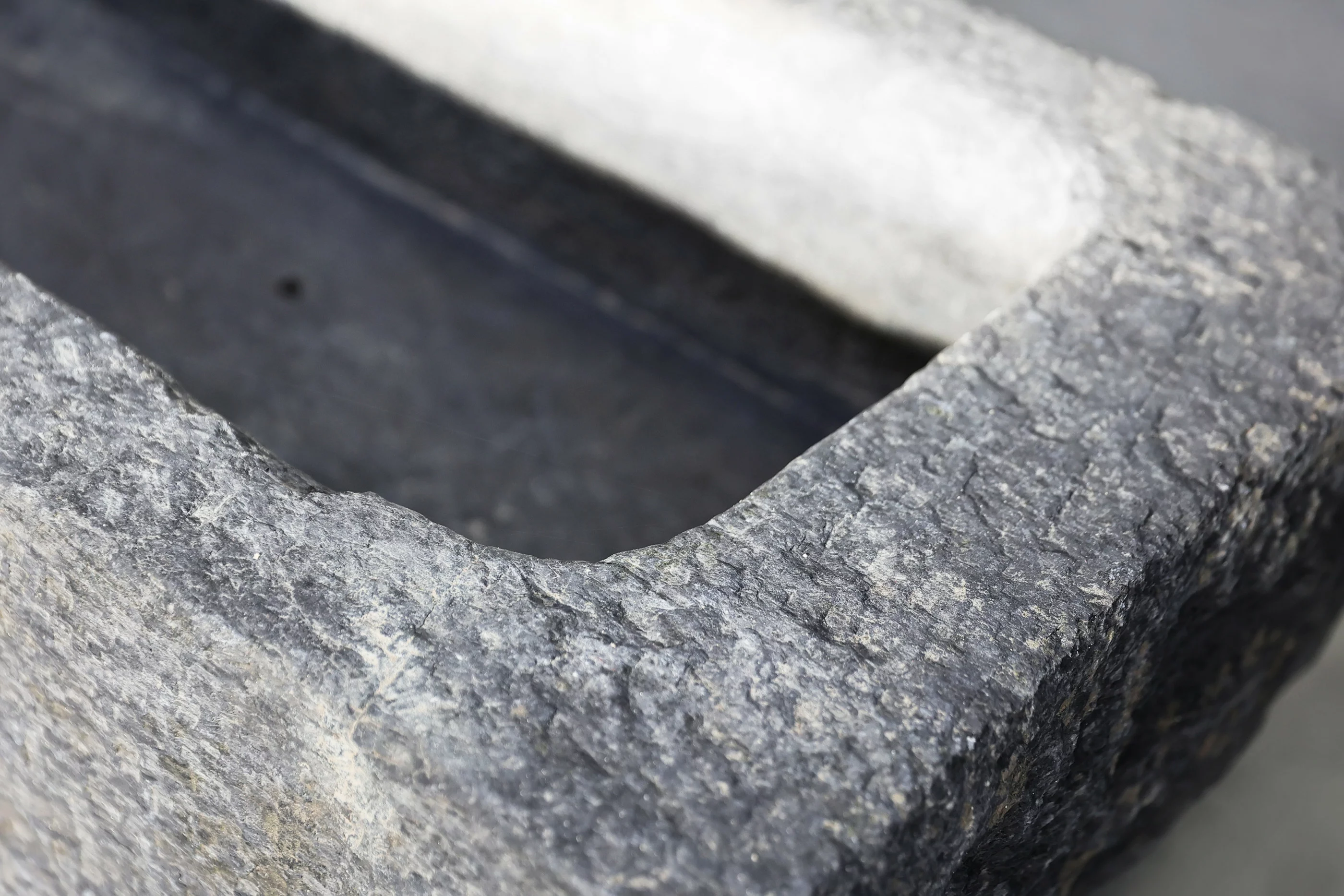 Presenting an exquisite 19th-century antique trough made from beautiful blue-grey slate stone. This antique piece, originating from the countryside of France, is in perfect condition with no fractures. The stone trough's fine slate composition and unique patina give it a timeless elegance that adds sophistication to any setting. Ideal as an antique garden planter or water feature, this stone trough is an outstanding addition to any outdoor space.