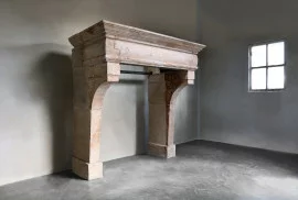Beautiful castle mantelpiece made of French limestone from the 19th century in the style of Lousi XIII! This mantle has a wide front section with beautiful obelisque legs and warm colors!