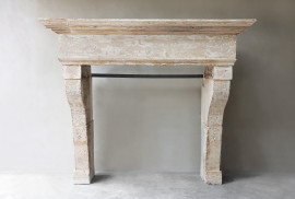 This antique castle mantelpiece made of French limestone dates from the 18th century and is in the style of Louis XIII. An imposing fireplace with a wide front section and slightly curved legs and molding. This fireplace has a very stately and imposing appearance due to its size and warm color scheme and is no less than 214 cm wide.