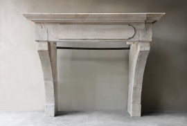 Beautiful robust castle mantelpiece made of French limestone. This antique mantle dates from the 19th century and is in the style of Louis XIII with a beautiful ornament in the middle of the front part of the fireplace. The shape of the legs is obelisk, the mantelpiece has a warm appearance with beautiful lines.