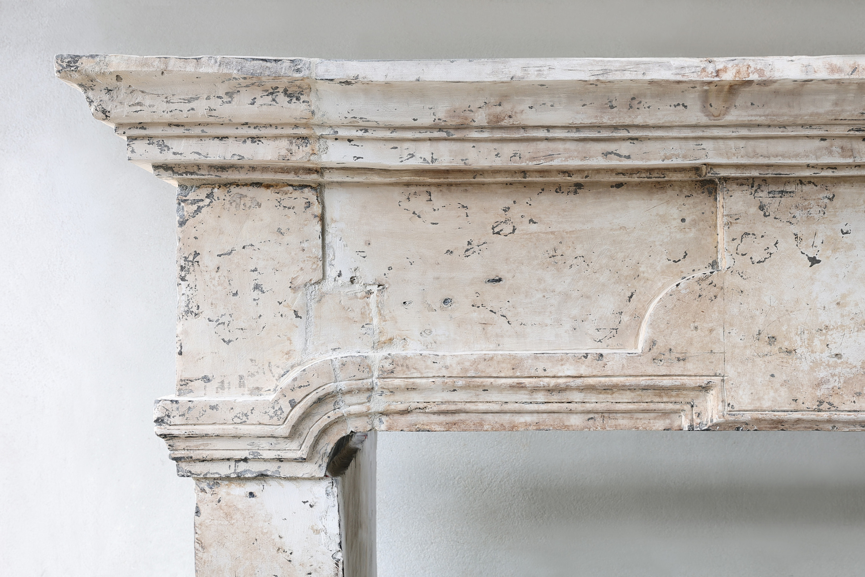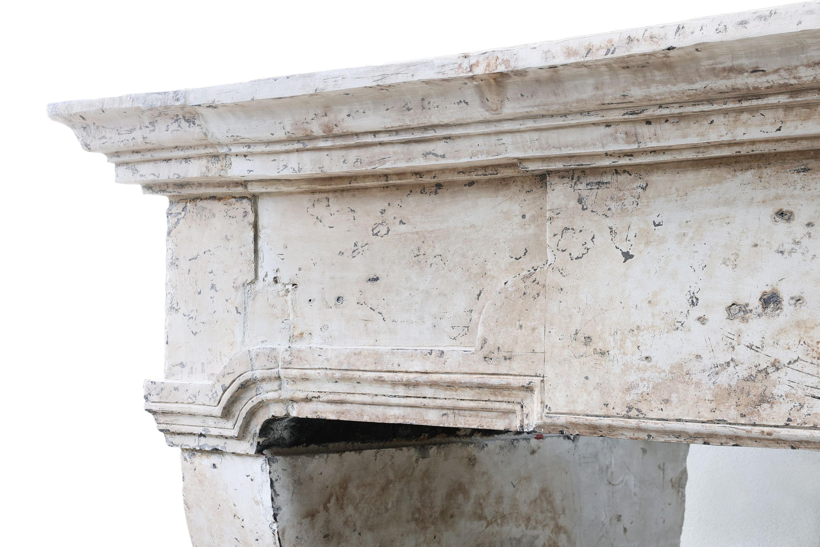 Very beautiful and robust castle mantelpiece made of French limestone! This antique mantelpiece dates from the 18th century and has a subtle ornament in the middle of the front part and curved legs! The fireplace has a width of no less than 236 cm. A beautiful mantelpiece within our collection!
