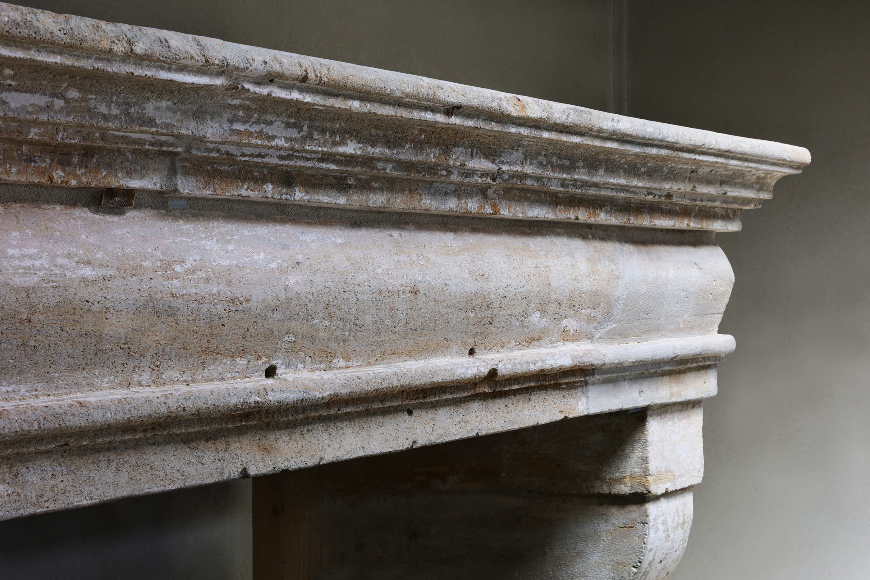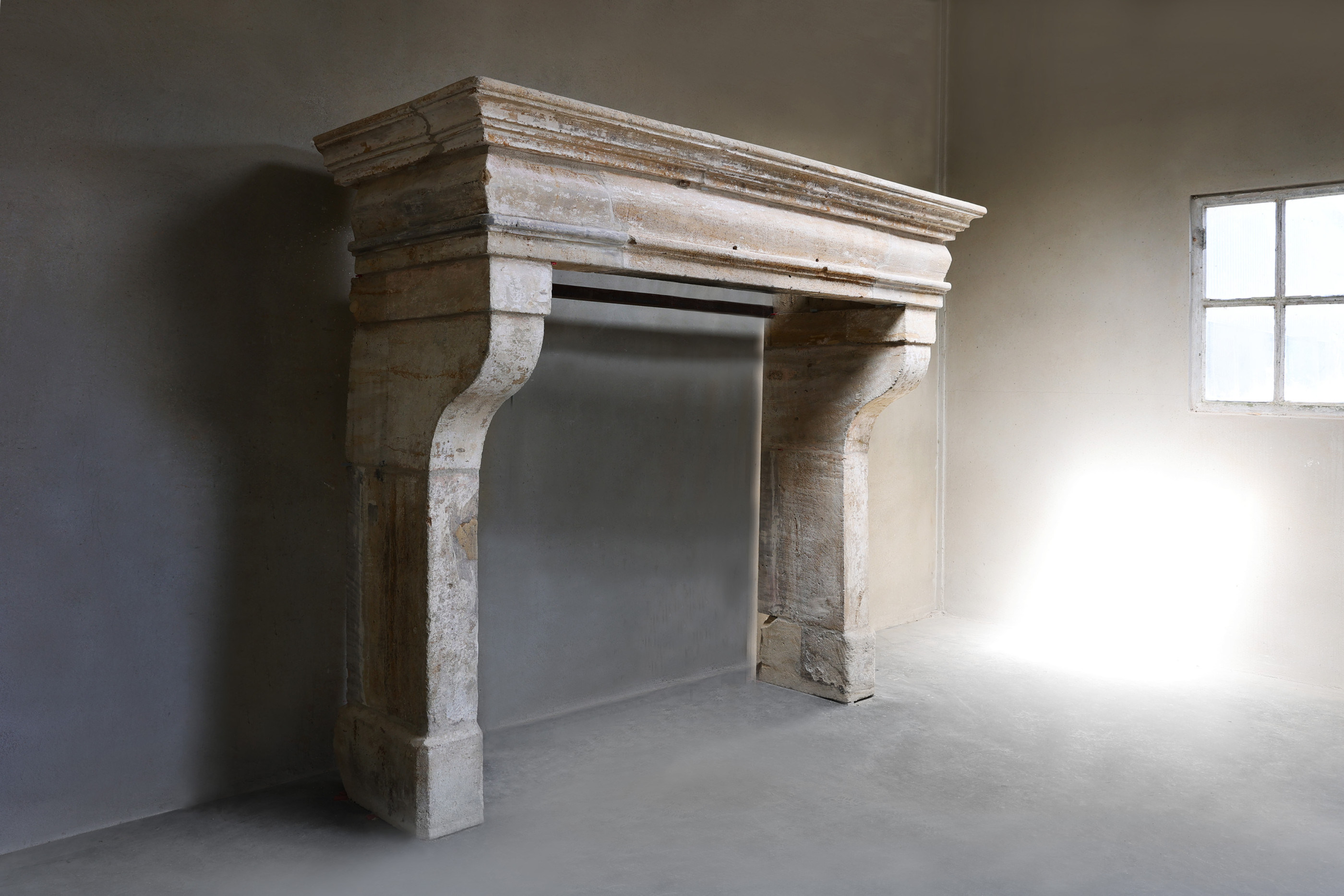 This 19th century French Campagnarde style fireplace is made from authentic limestone. The robust design and soft weathering give a warm, rural look. A timeless and characterful piece that adds atmosphere and charm to any room. Perfect for lovers of rustic elegance.