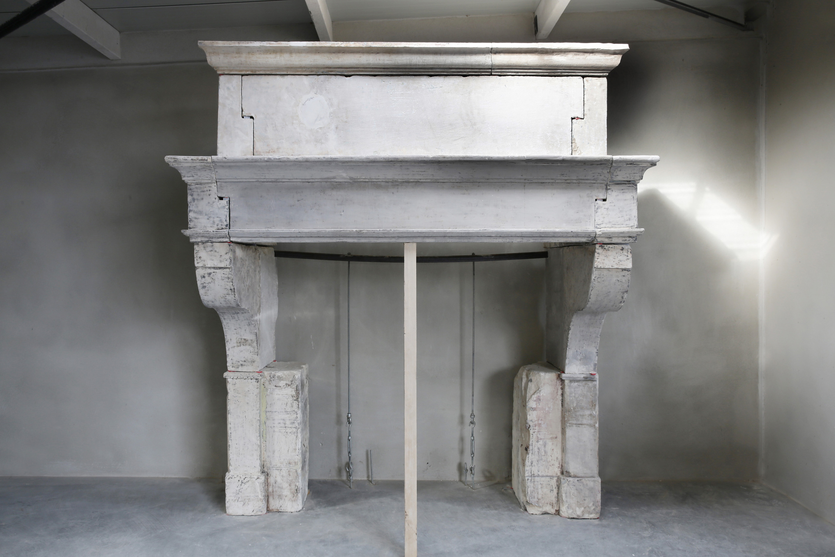old french fireplace of limestone