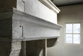 Antique castle fireplace with trumeau from the 18th century! A beautiful fireplace within our collection. This fireplace is in the style of Louis XIII and was made of French limestone. The robust front part and trumeau provide an impressive appearance!