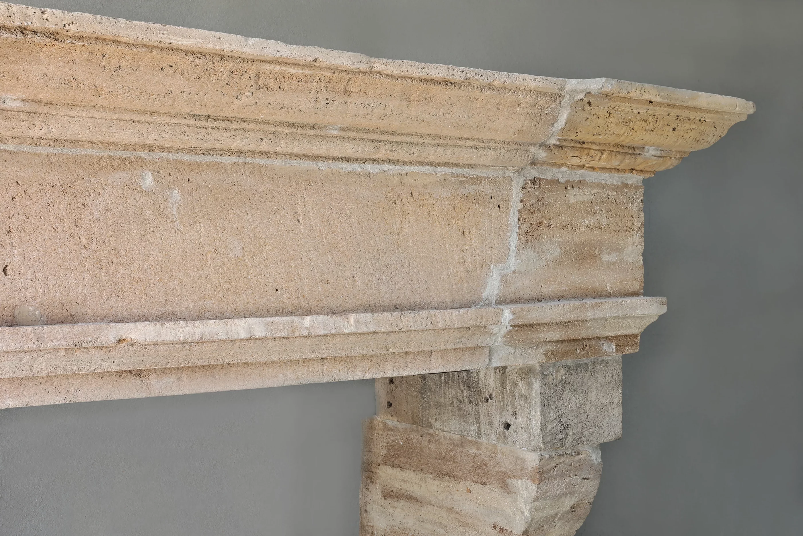 The fireplace originates from the Burgundy region of France and dates back to the 19th century. Its refined profile, gently curved legs, and subtle lines give this piece a discreet French charm. The stone features a beautiful natural patina, shaped by centuries of use.