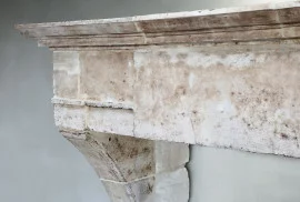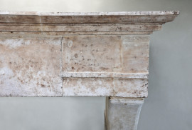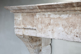 Very impressive castle mantel surround made of French limestone from the 18th century in the style of Louis XIII. A robust antique mantle with a beautiful wide top and a warm appearance!