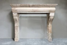 Beautiful robust castle mantelpiece made of French limestone. This antique mantelpiece dates from the 19th century and is in the style of Louis XIII. A very beautiful rustic fireplace that we retrieved from a castle near the Dordogne, France. This stately mantelpiece has beautiful lines and a rural appearance.