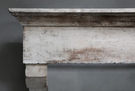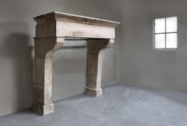 Very beautiful antique fireplace made of French limestone from the 19th century in Campagnarde style. This fireplace has a warm color scheme and a thick top. The calm appearance and authenticity of this mantelpiece provide added value to your interior!