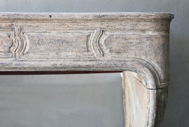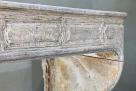Authentic French limestone fireplace with beautiful decorations in the front area. This elegant mantle surround dates from the 19th century and is in the style of Louis XVI. The beautiful patina and color scheme of this antique fireplace make this fireplace unique.