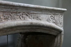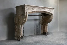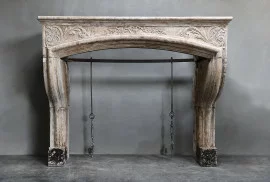 Very beautiful and decorative fireplace of French limestone. This antique mantle surround has various ornate ornaments in the front part. The fireplace has beautiful shapes, lines and a warm appearance! The format is also suitable for many interiors. This fireplace is in the style of Louis XIV.
