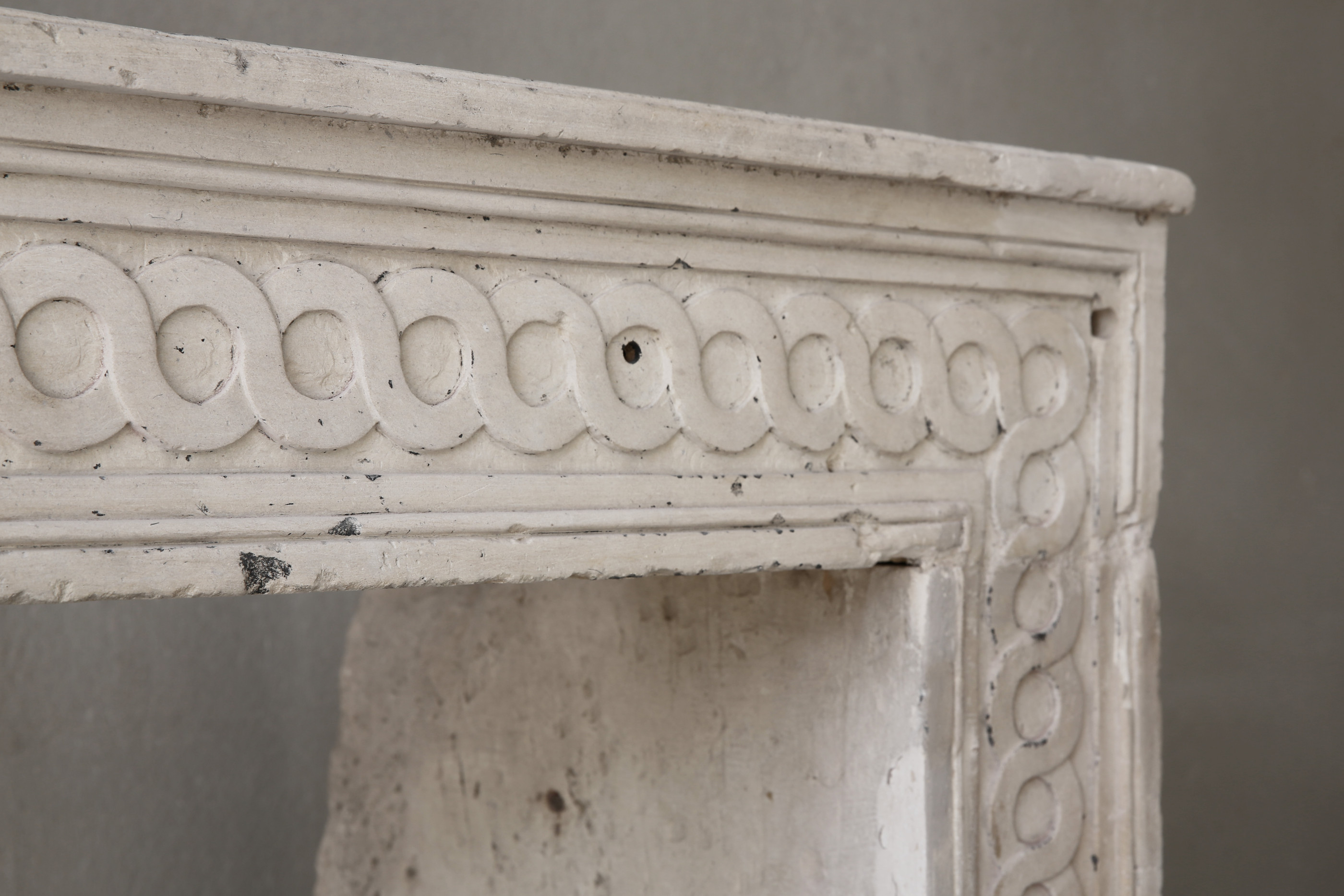 Antique french limestone fireplace Details
