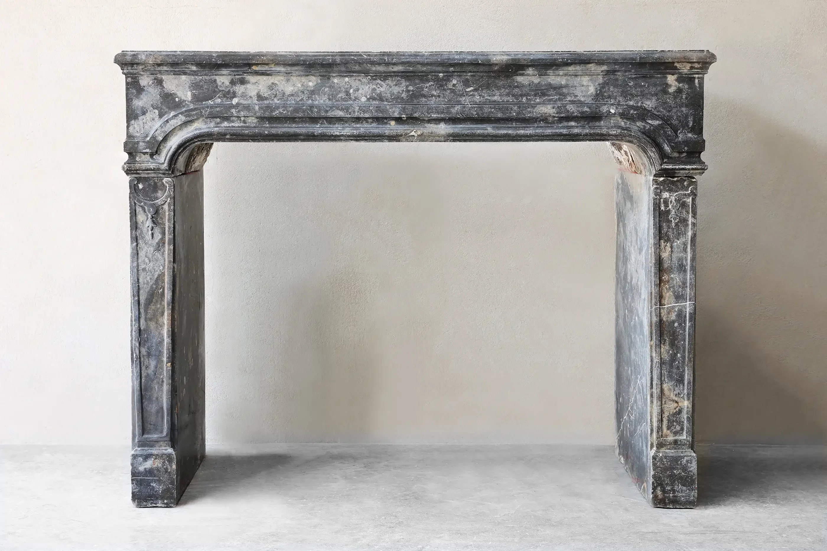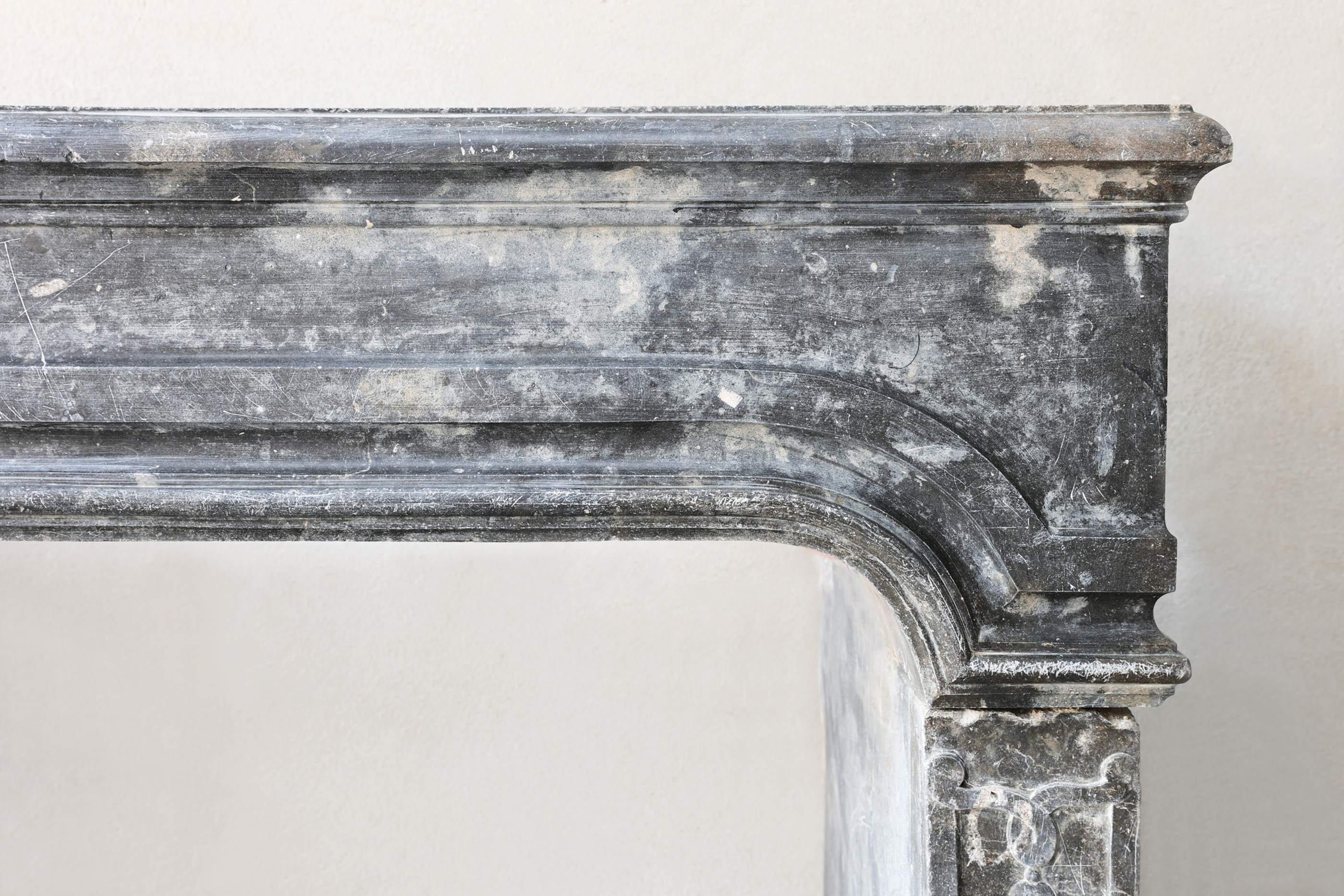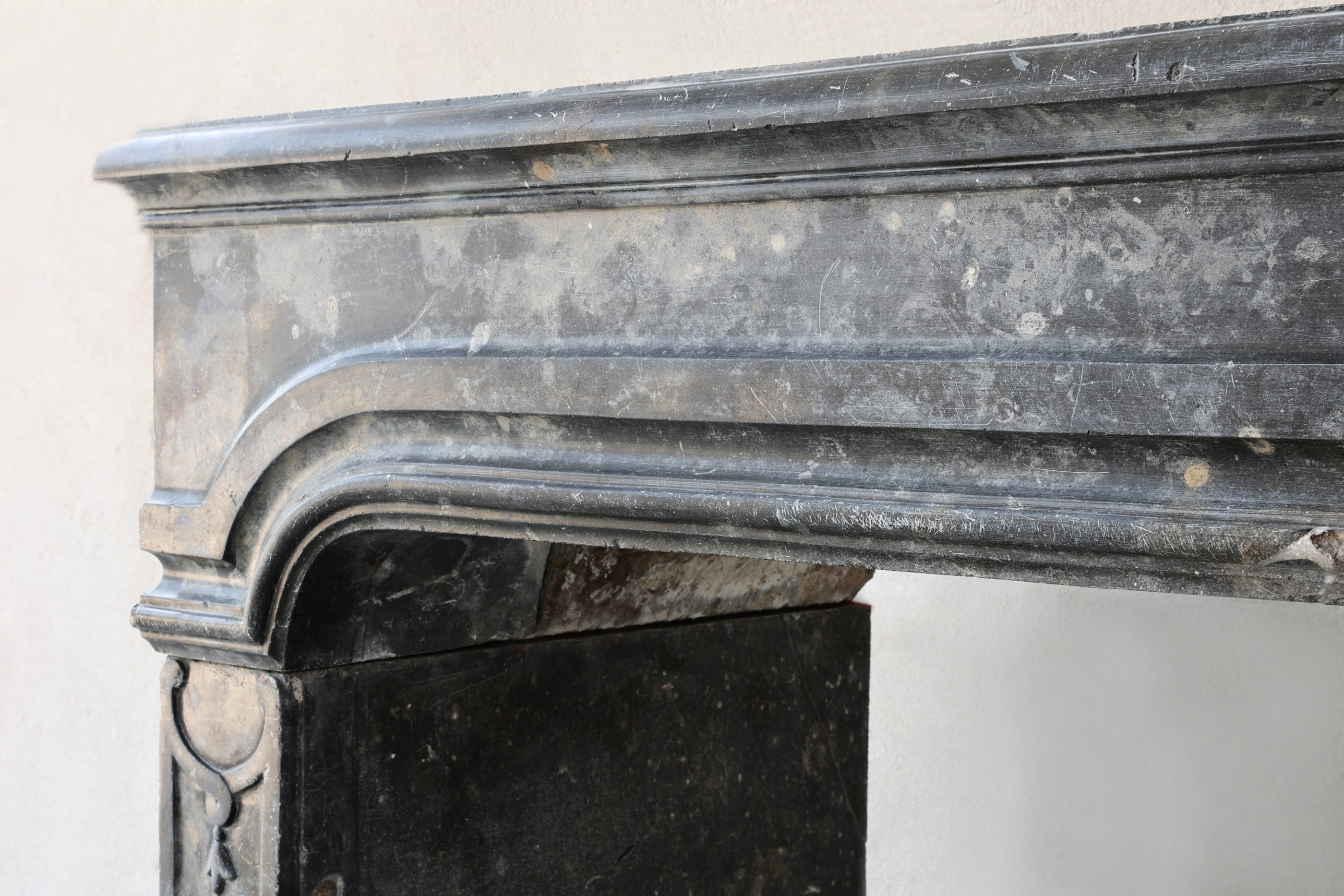 Beautiful 19th-century fireplace from the Louis XVI period, crafted from dark Burgundy stone. The refined yet simple design with soft curves makes it timeless and easy to integrate into any setting.
