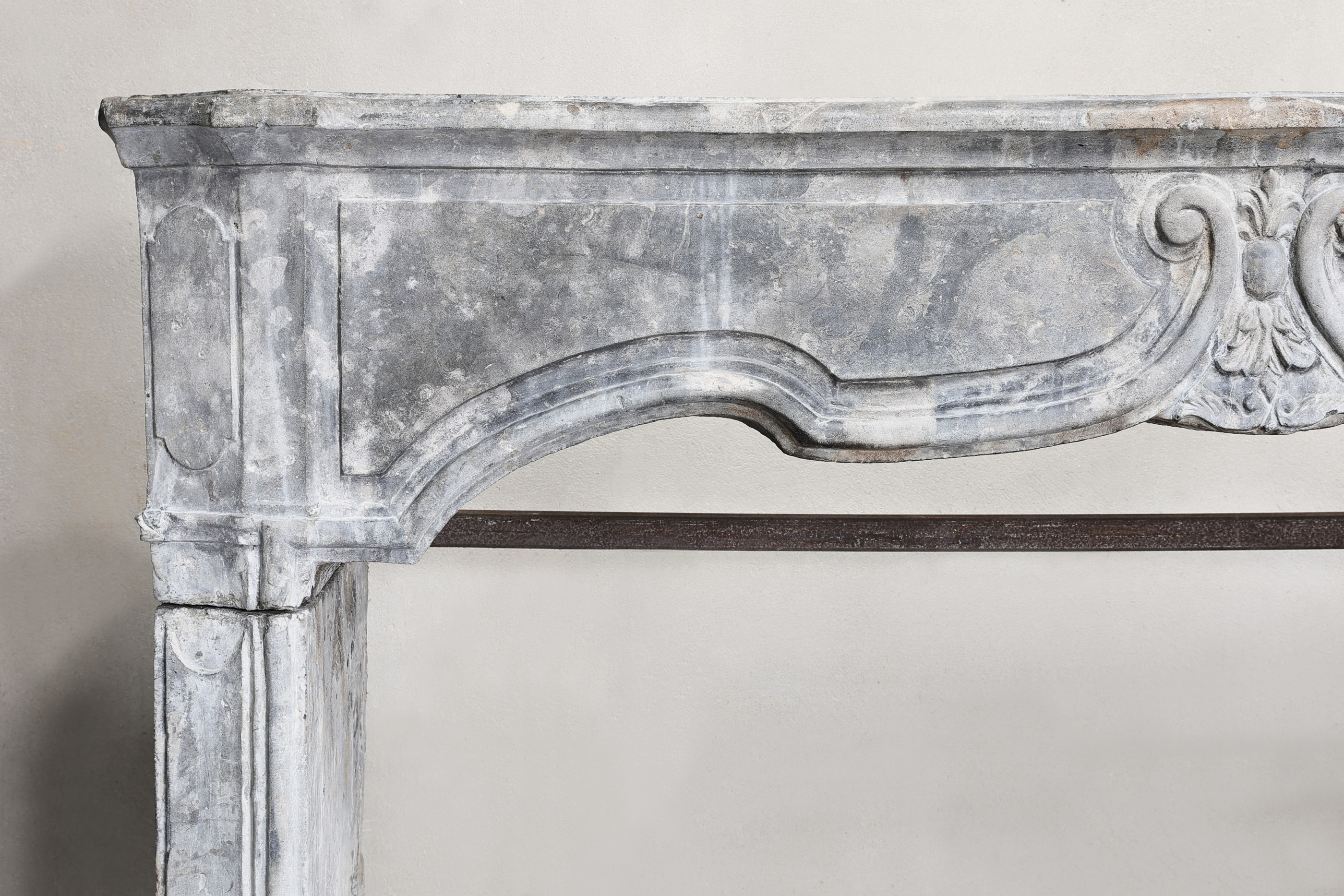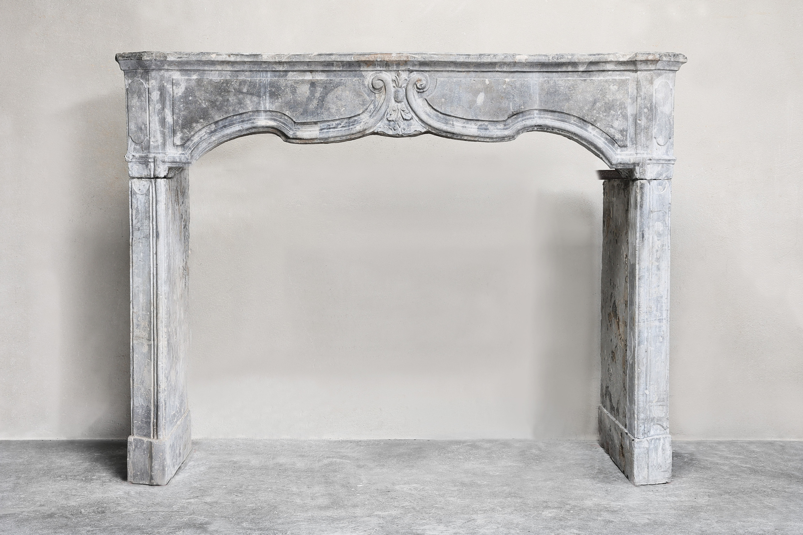 A beautiful antique mantelpiece, made of gray marble stone from the 19th century, exudes timeless elegance and historic charm. This hand-carved fireplace is not only a functional element in an interior, but also a valuable piece of furniture that reflects the history and craftsmanship of that time.