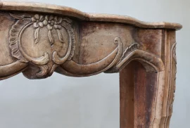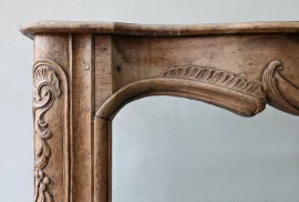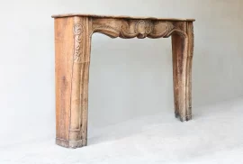This elegant antique French mantel is a rare example of the Louis XV style, characterised by its soft, curved lines and refined carved ornamentation. The central cartouche and flowing side scrolls create a graceful movement typical of 18th-century French design.