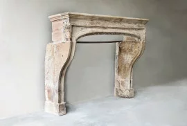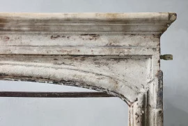 Beautiful antique fireplace made of French limestone from the 19th century. A mantle piece with a beautiful shape and lines. The warm color and authenticity of this fireplace provide an attractive appearance. This mantelpiece is in the style of Louis XIV and has a width of 184 cm.