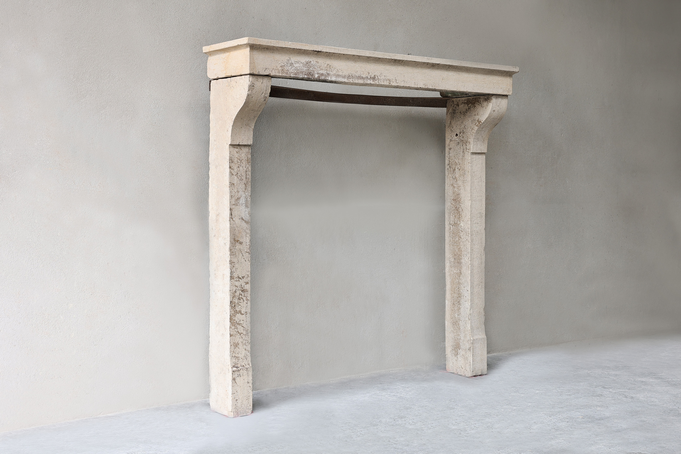 Beautiful antique French limestone fireplace from the 19th century! A mantelpiece with a calm appearance and beautiful warm color scheme. This antique mantel is compact and simple and a valuable piece of furniture for any interior!