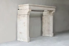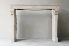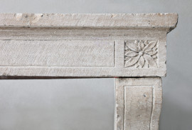Beautiful antique fireplace from the 19th century in Campagnarde style. This old fireplace of French limestone has a warm color scheme and some beautiful ornaments. A charming rustic mantle with character.