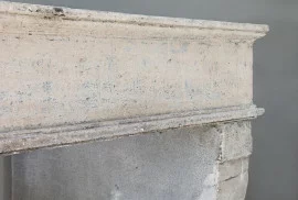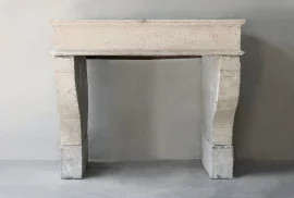 Beautiful rustic mantelpiece of French limestone from the 19th century. This antique mantelpiece has a wide front section and beautiful lines. The legs of this fireplace are slightly curved. A robust mantelpiece with authenticity.