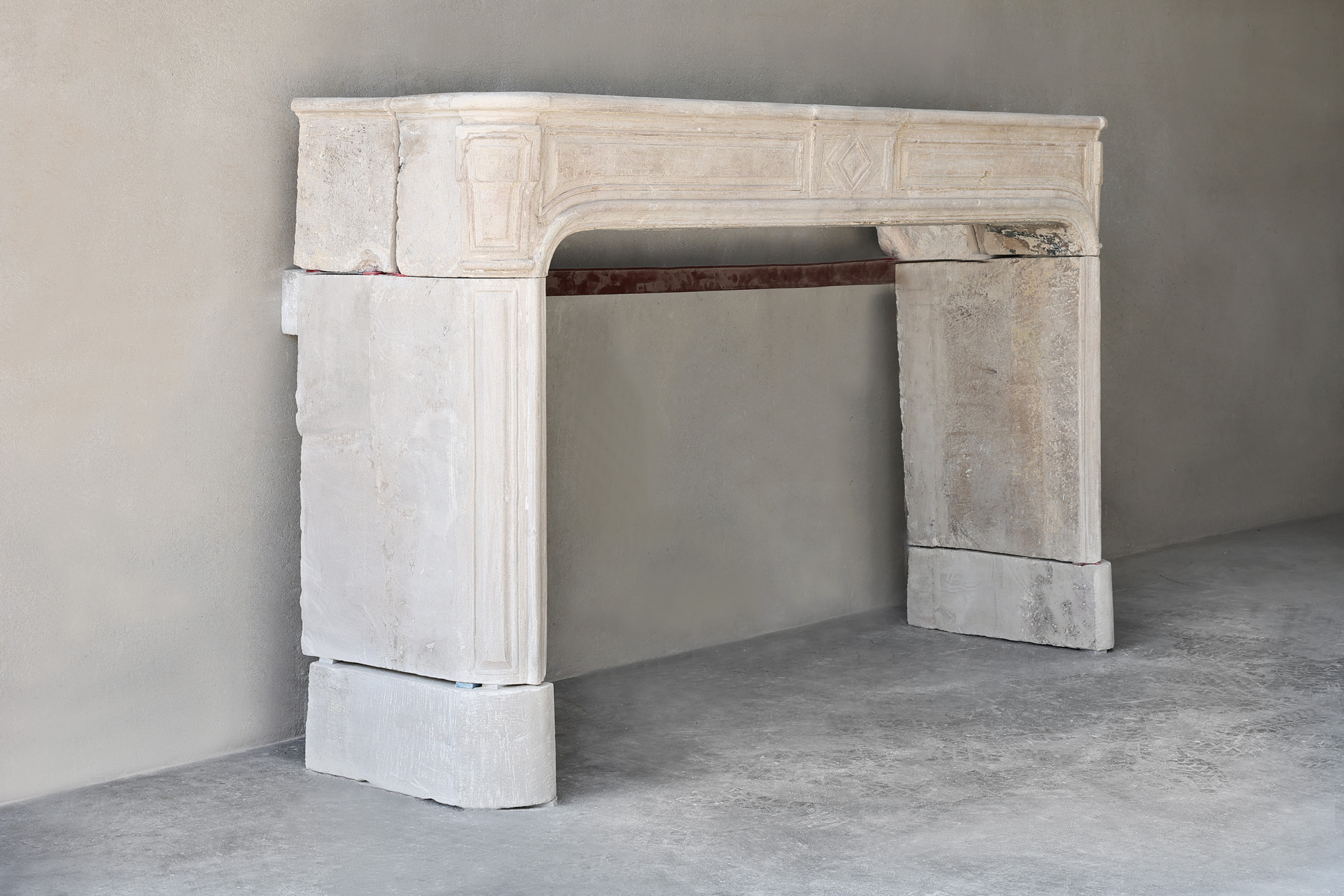 We offer professional in-house crating to ensure the safe transport of this antique limestone fireplace mantel. Full-service global shipping to your construction site is available. For inquiries or to place this mantel on hold, contact us at info@de-opkamer.nl.