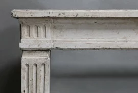 This antique mantelpiece from the 19th century is made of French limestone and executed in Louis XVI style. The sleek, straight design with fine vertical lines gives a calm, classic look. The mantelpiece combines simplicity with elegance and fits well in both historical and modern interiors. A stylish and timeless piece that immediately adds character to a room.