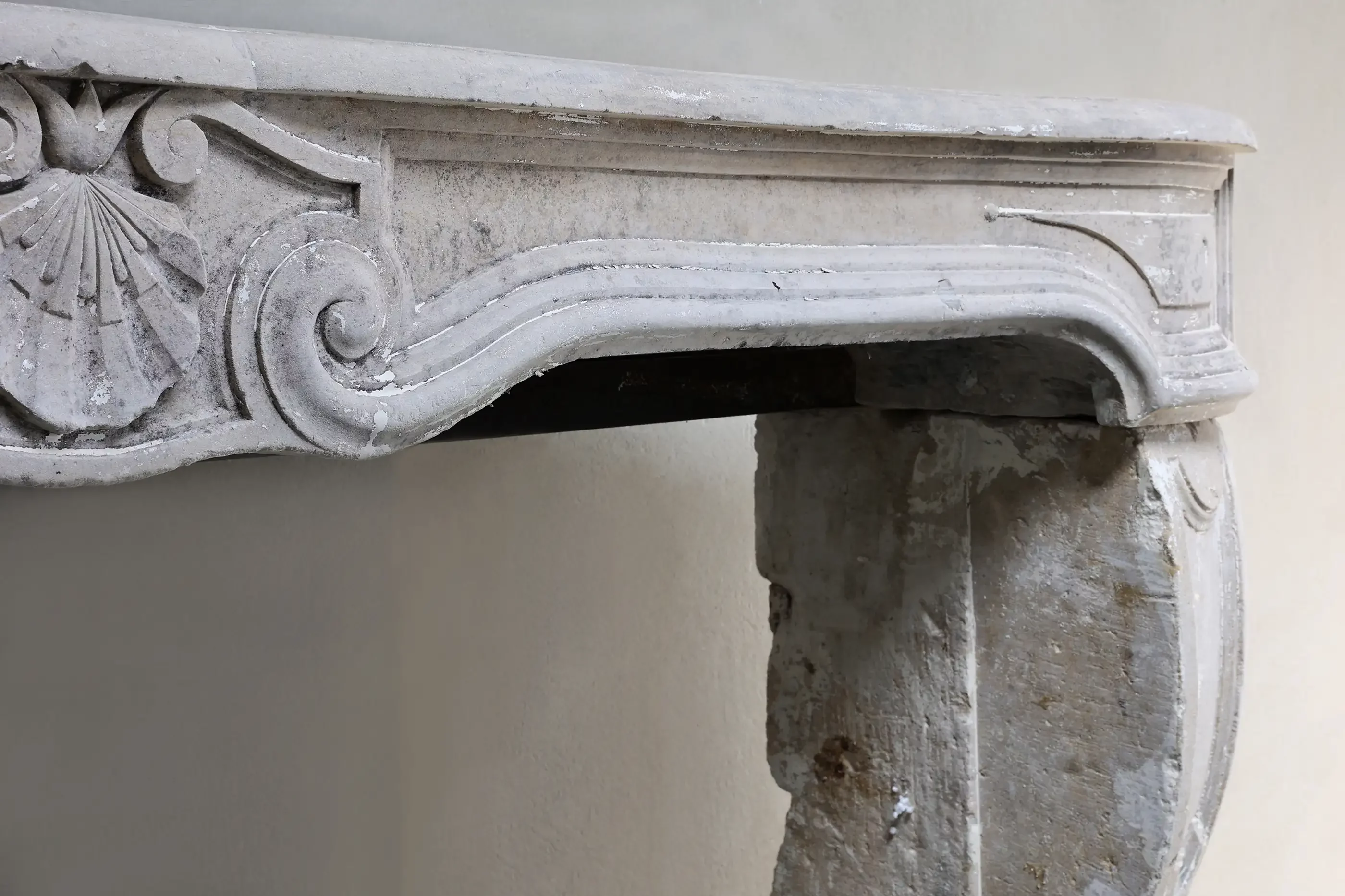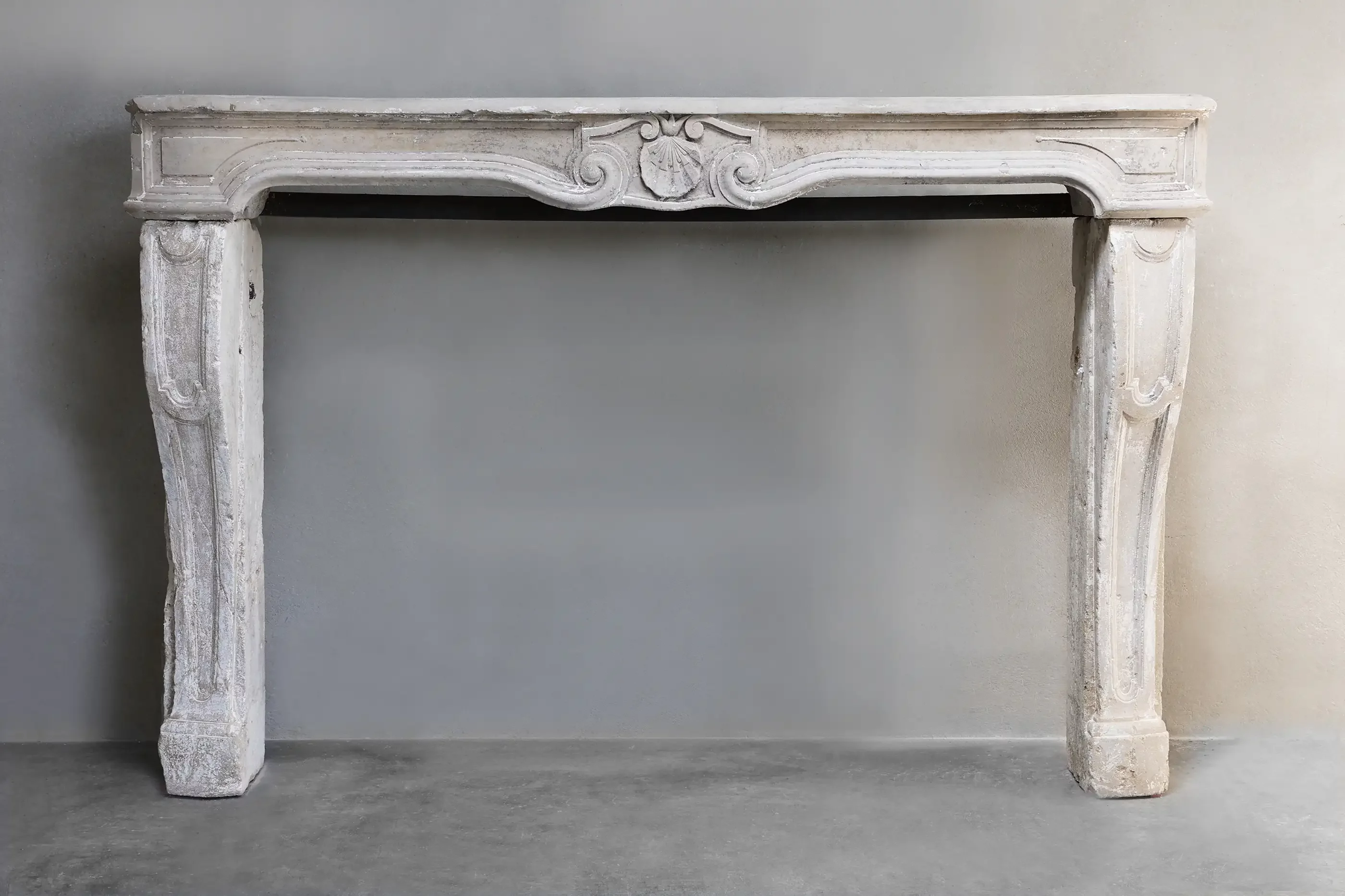 Discover this authentic French Louis XV fireplace surround from the 18th century, handcrafted from original limestone. This antique fireplace features elegant rococo curves, a central shell motif, and refined carved details – characteristic of the Provence and Burgundy style. A stunning statement piece for luxury interiors, historic homes or contemporary spaces with character. This antique limestone mantel brings warmth, heritage, and timeless French elegance into any room – ideal for interior designers, architects, and collectors of authentic French fireplaces.