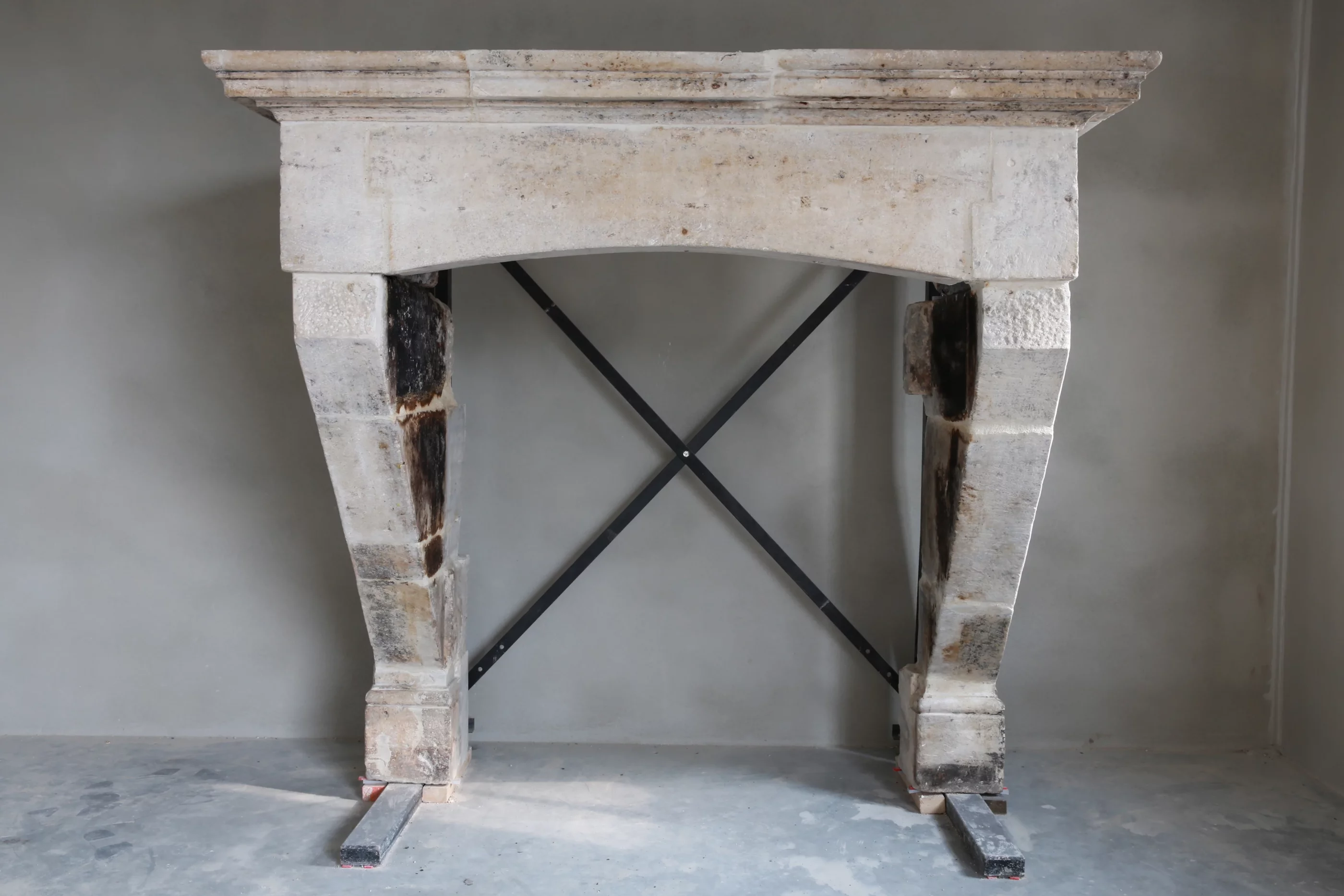 This authentic French castle fireplace comes from the Bordeaux region and dates back to the 19th century. A beautiful fireplace with history and a lot of allure. This fireplace has a double top and a beautiful molding (frame).