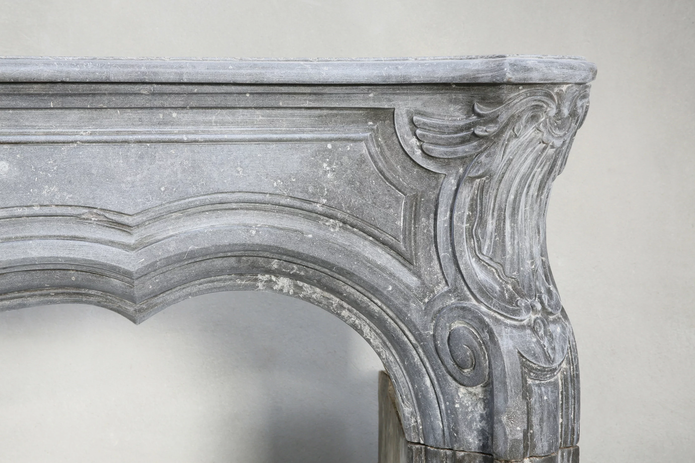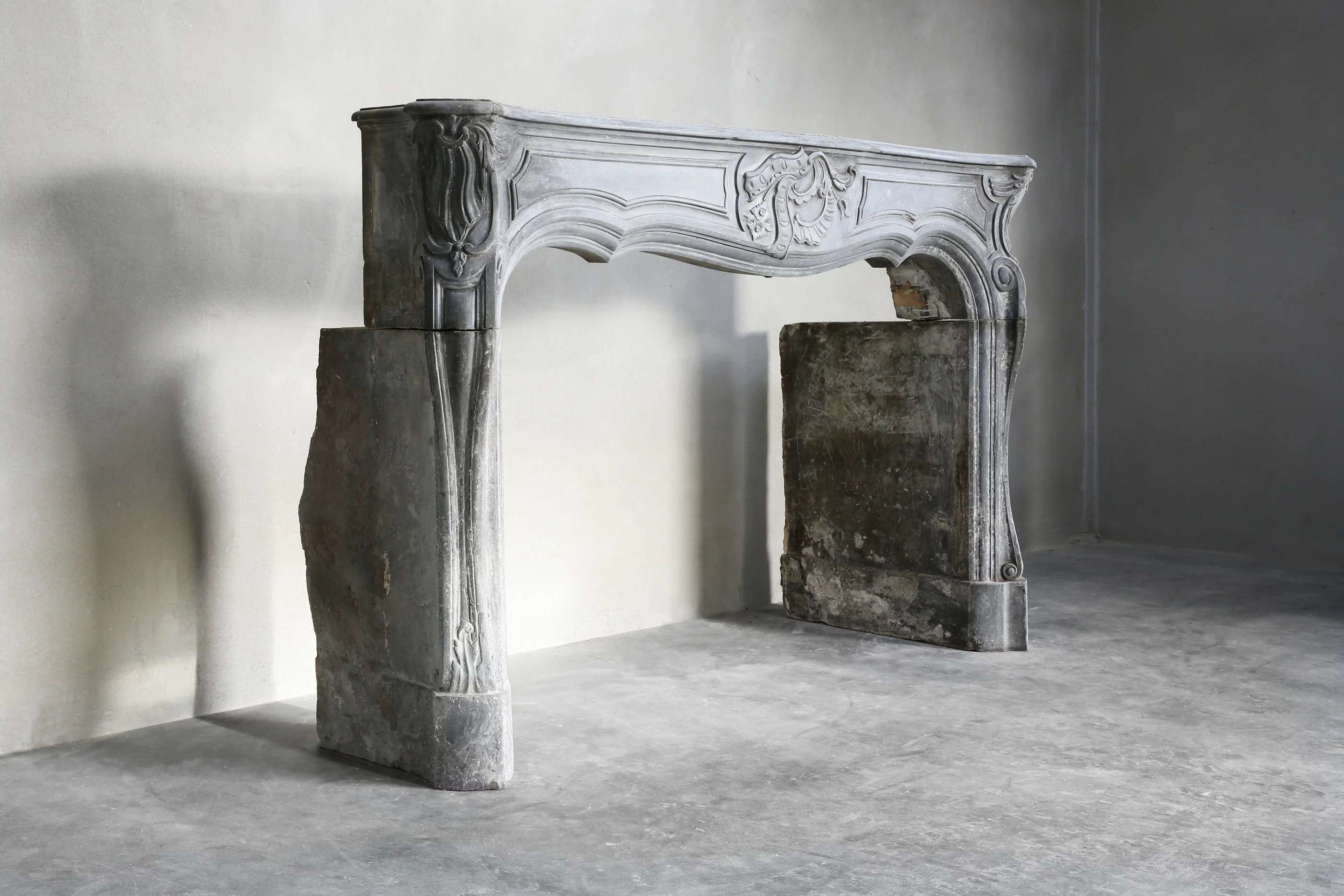 Beautiful elegant antique fireplace from the 18th century! A fireplace that is richly decorated with ornaments and has a beautiful shape. The gray marble stone and shape provide appearance and make this antique fireplace a beauty! The mantelpiece is in the style of Louis XV and is a unique model within our collection. Ask about the possibilities at De Opkamer!