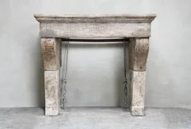 Very nice compact antique fireplace made of French limestone with appearance. The fireplace dates from the 19th century and is in Campagnarde style. The top is nice and robust and has beautiful lines. The legs are slightly bent and give charm to the fireplace.