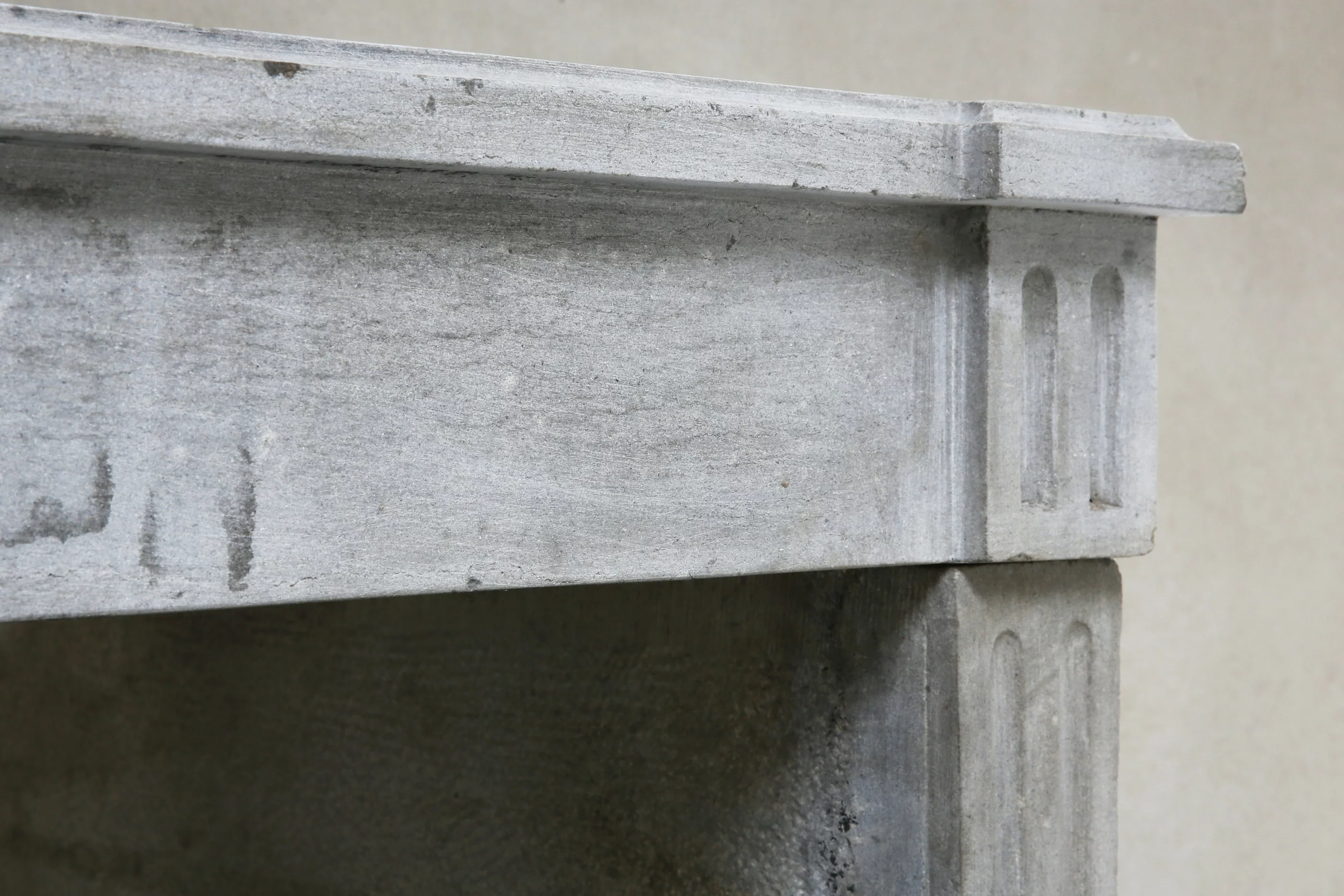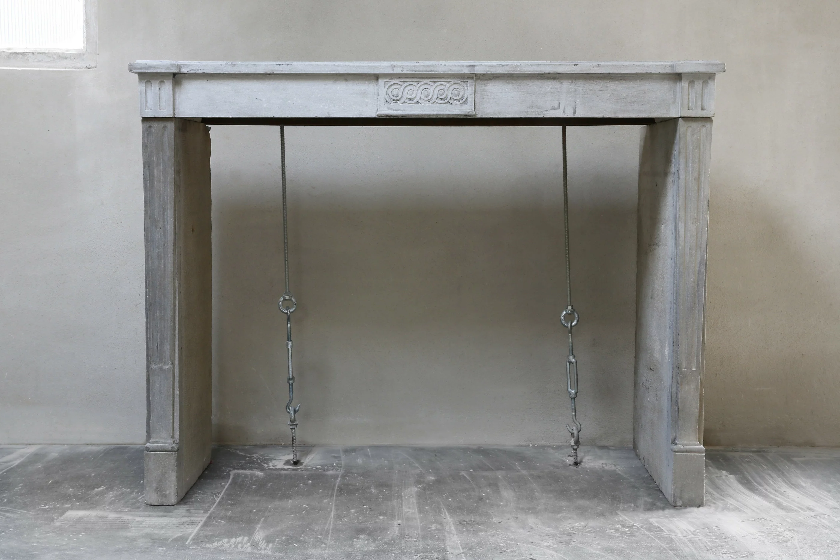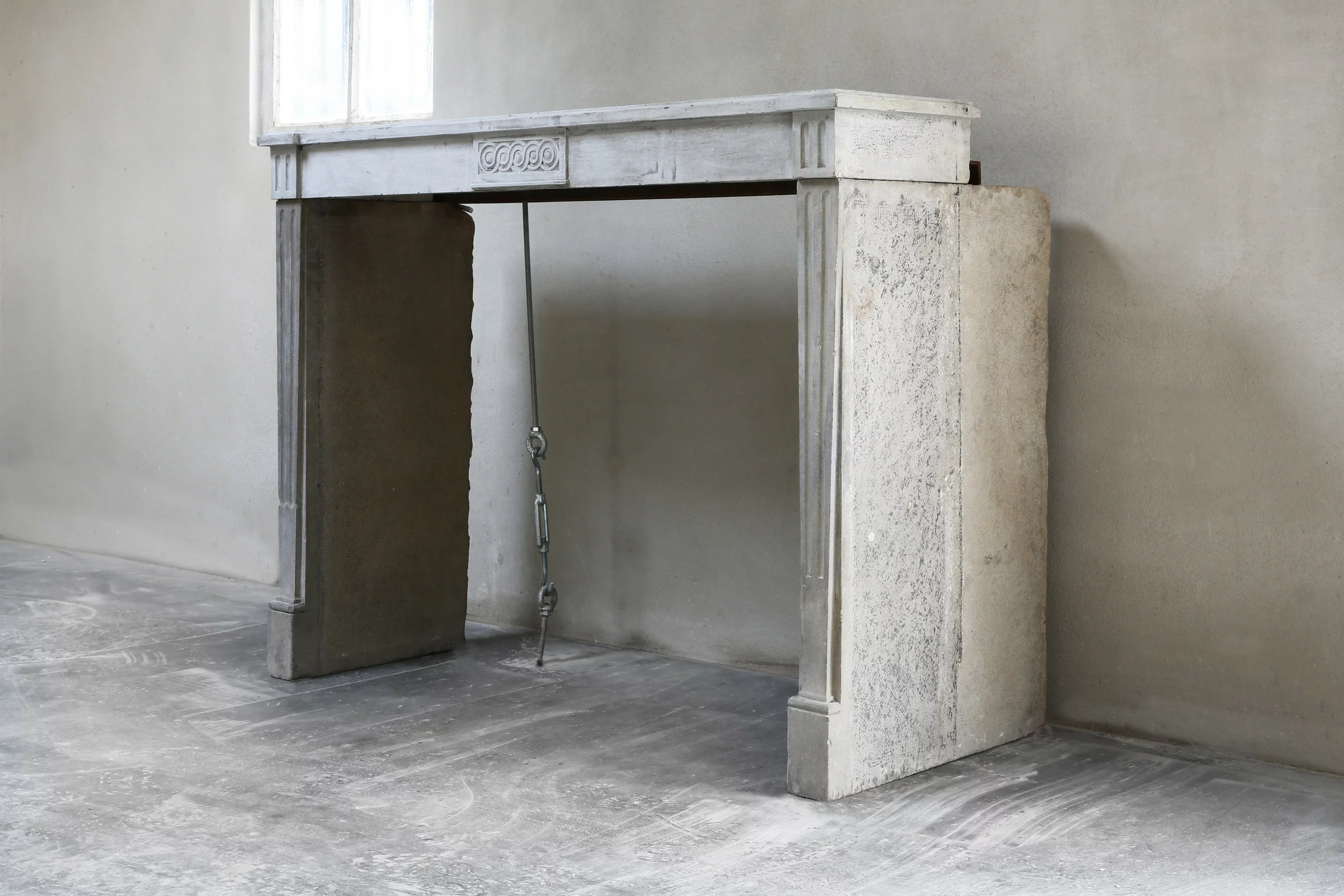 Beautiful elegant antique fireplace with straight shapes. This fireplace dates from the 19th century and is in the style of Louis XVI. This beautiful gray color provides a serene appearance. A fireplace that fits both in a modern interior and in a rural interior. Ask about the possibilities at De Opkamer!