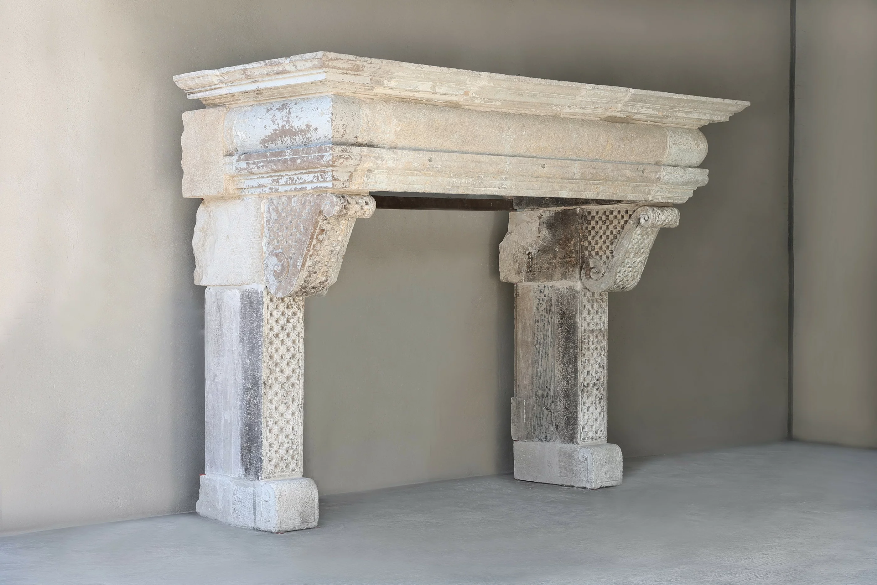 old mantle surround of french limestone