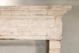 Very impressive castle mantelpiece made of French limestone from the 19th century. This antique mantel has a beautiful wide front section, making the mantelpiece even more robust! It is a rustic fireplace with few ornaments and beautiful lines.