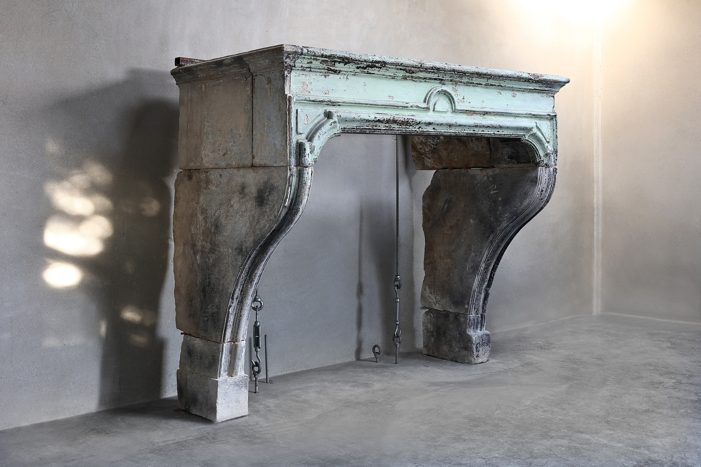 This remarkable antique fireplace mantel originates from the heart of Paris and dates back to the period between 1780 and 1820. Designed in the distinguished Louis XIV style, it showcases exceptional craftsmanship and historical significance. The French limestone used in its construction has developed a stunning natural patina over centuries, adding authentic character to its appearance.