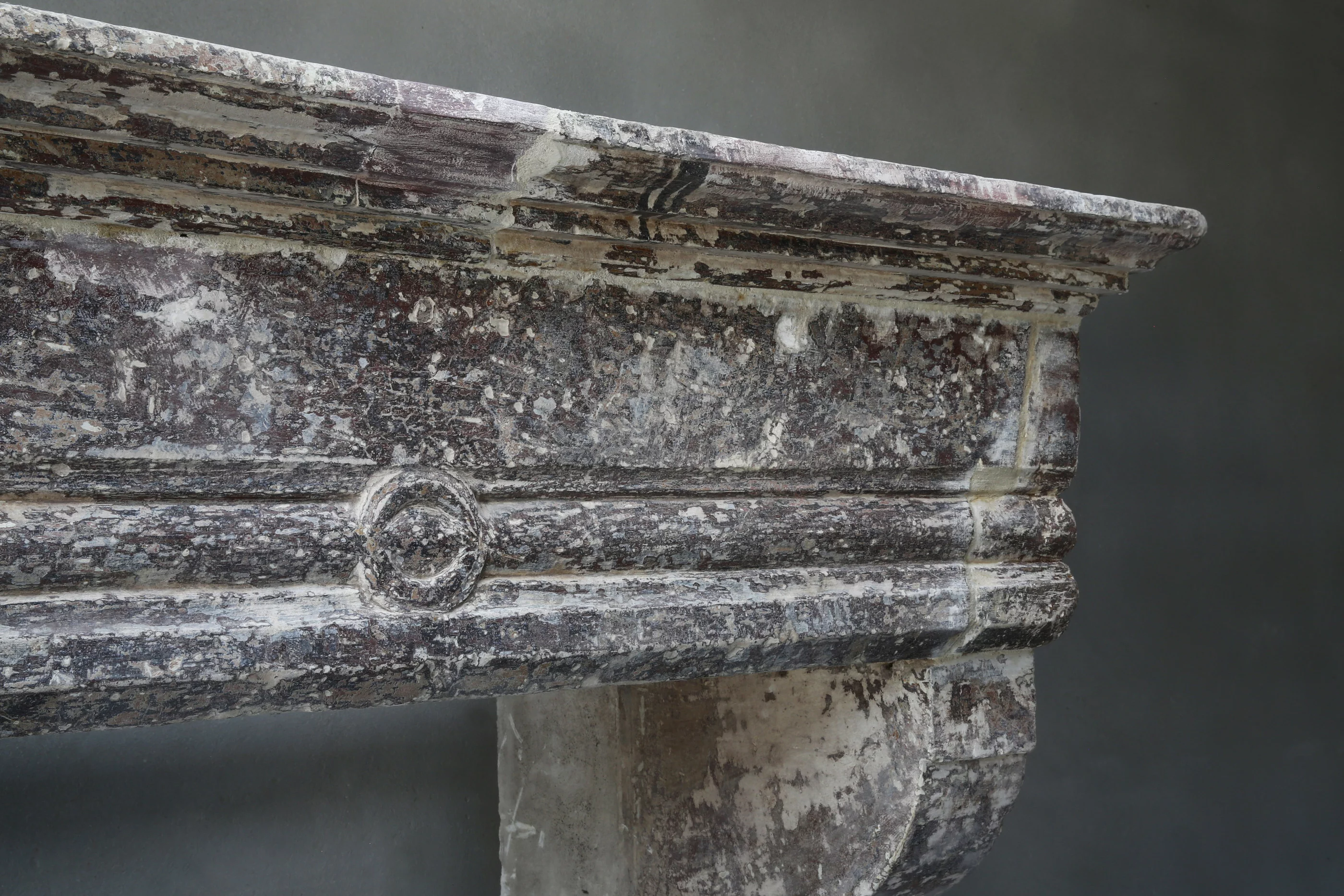 An antique robust castle chimney of French limestone from the 19th century in the style of Louis XIII. The front part is wide and has beautiful lines and ornaments. The patina is also very nice at this fireplace and makes the fireplace even more authentic than it already is. A valuable piece of furniture and added value for your interior!