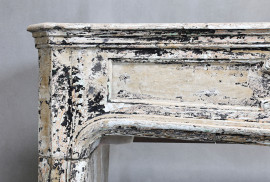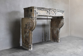 Ornate and patinated fireplace from the 19th century. A fireplace with history and allure! This fireplace dates from the 19th century and is made of French limestone. The fireplace is in the style of Louis XIV and has hand-carved ornaments in the front part.