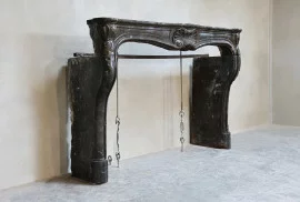 Beautiful antique fireplace of Burgundian marble stone. This fireplace is in the style of Louis XV and dates from the 19th century and features a beautiful scallop in the middle of the front part.