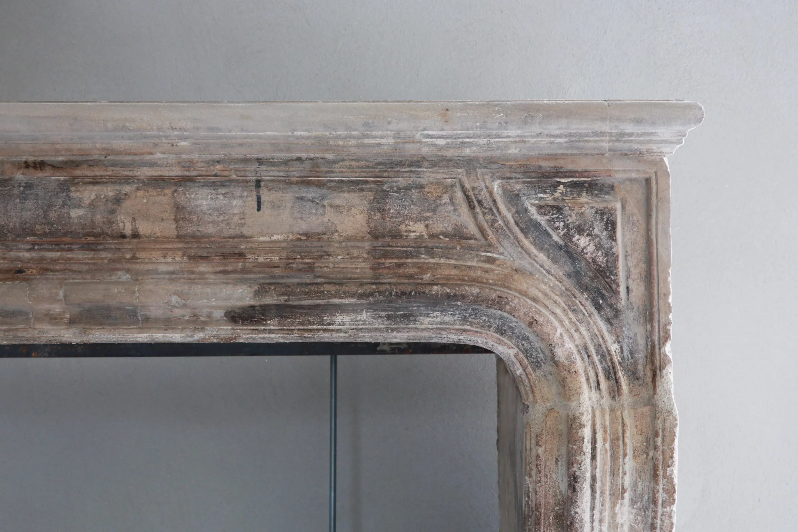 This beautiful antique fireplace has a very nice appearance in its entirety. The beautiful shape and patinee ensures that this chimney is very nice. The frame and curved legs give the chimney a simple grace. The chimney is the era of Louis XIV.